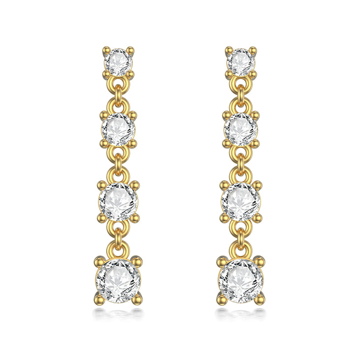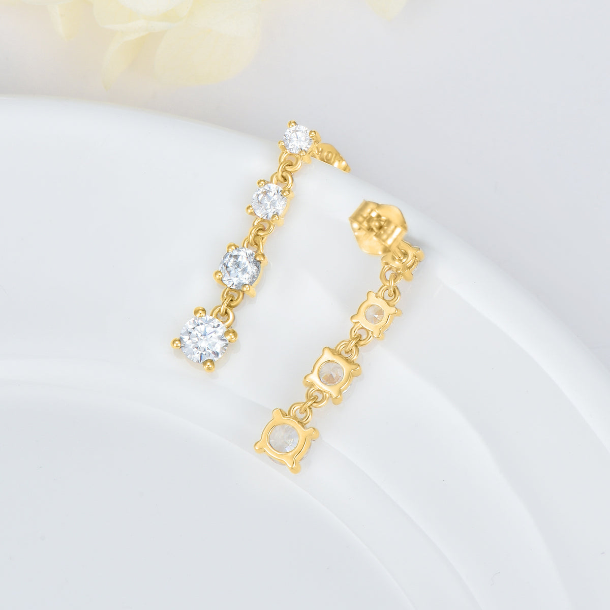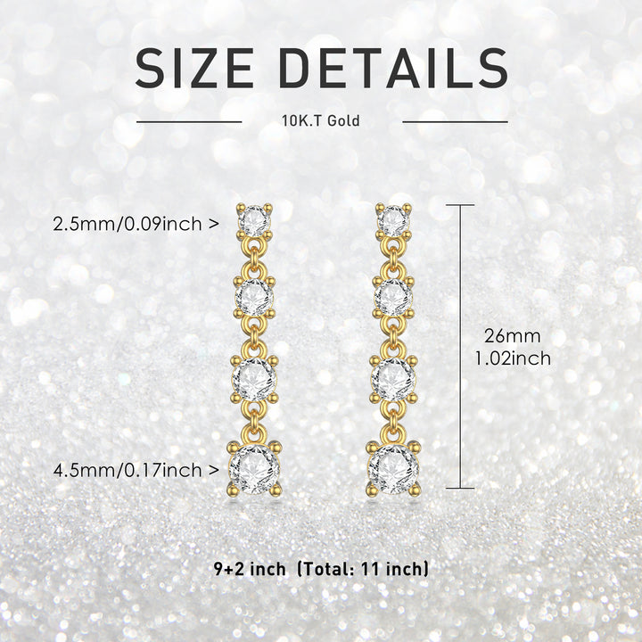 10K gold. Clear cubic zirconia stones. Drop earring design.