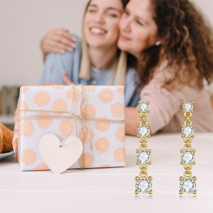 10K Gold Cubic Zirconia Couple Drop Earrings