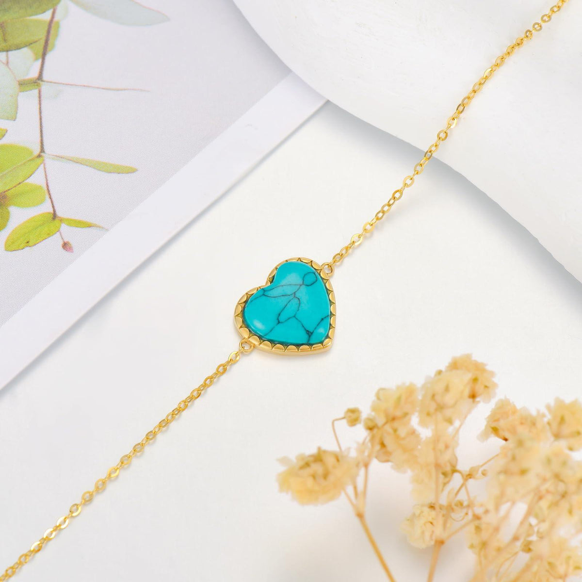 14K Gold Heart Turquoise Charm Bracelet For Women
