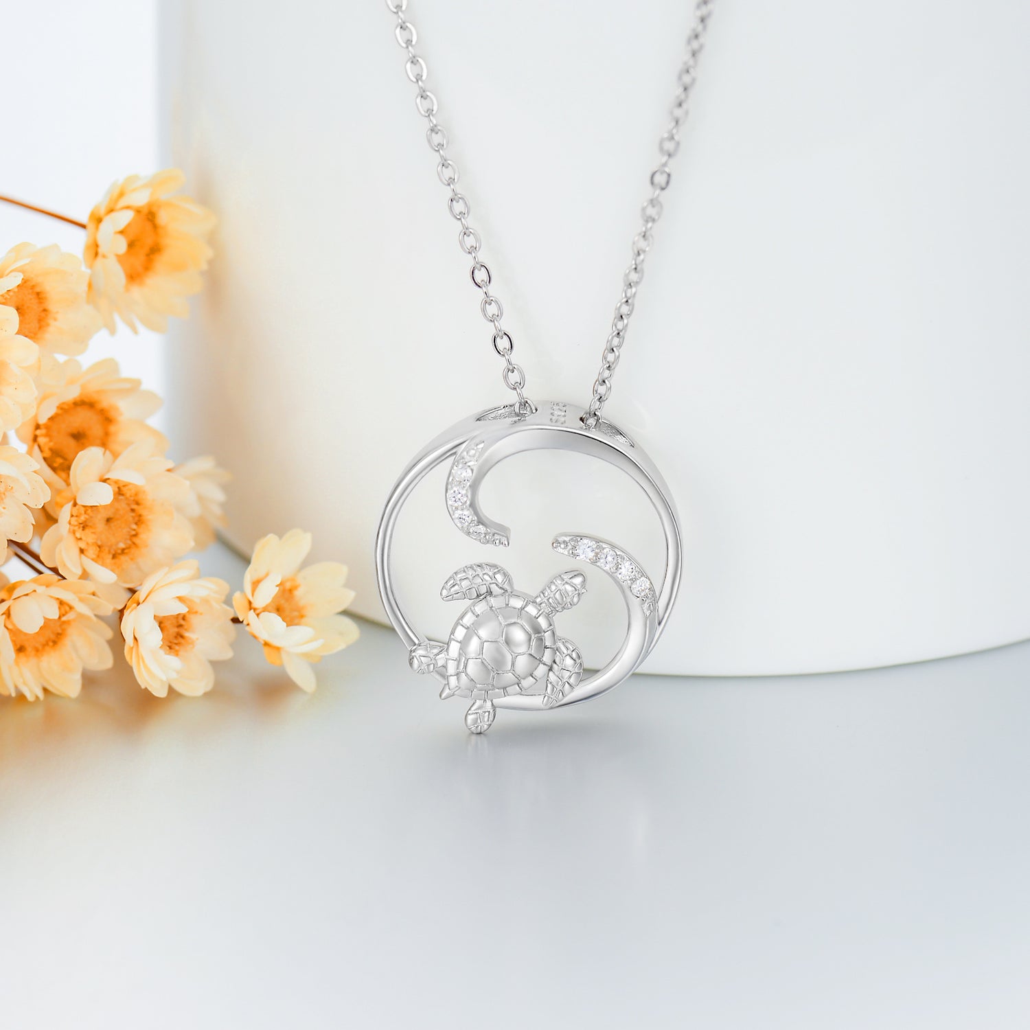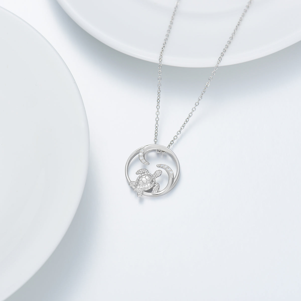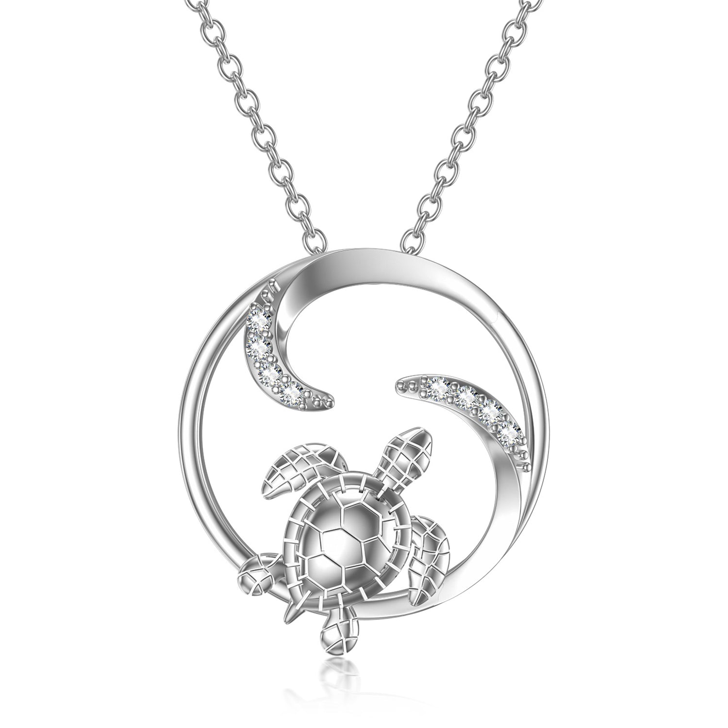 Sterling Silver Cubic Zirconia Turtle Pendant Necklace For Women
