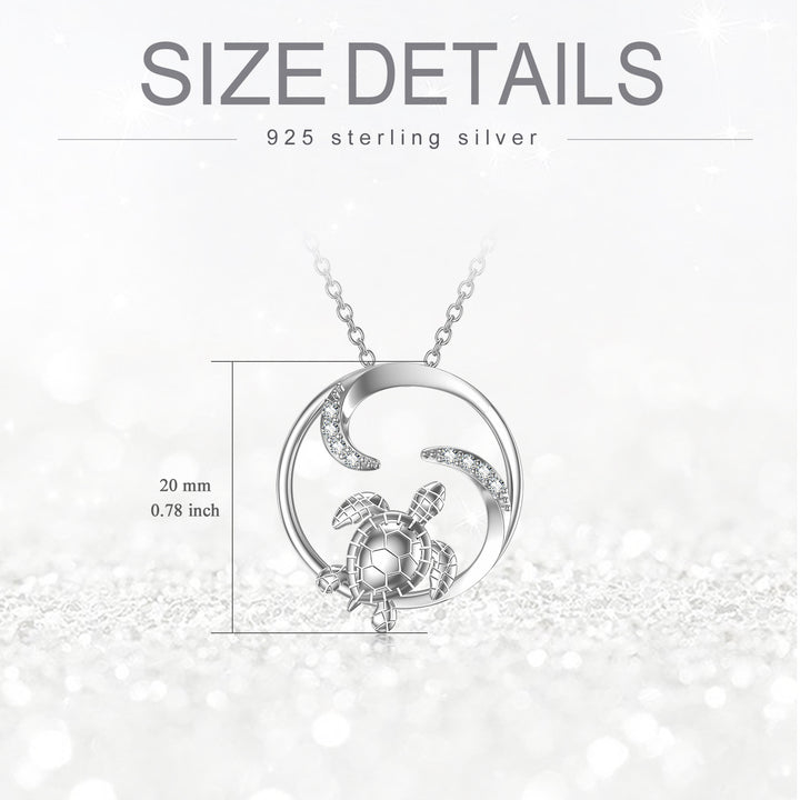 This Sterling Silver Cubic Zirconia Turtle Pendant Necklace For Women by YFN is a stunning piece that symbolizes resilience and protection. Crafted from premium sterling silver and beautifully white gold plated, the charming turtle design is adorned with a perfectly round, clear Cubic Zirconia that glistens like the ocean's surface.