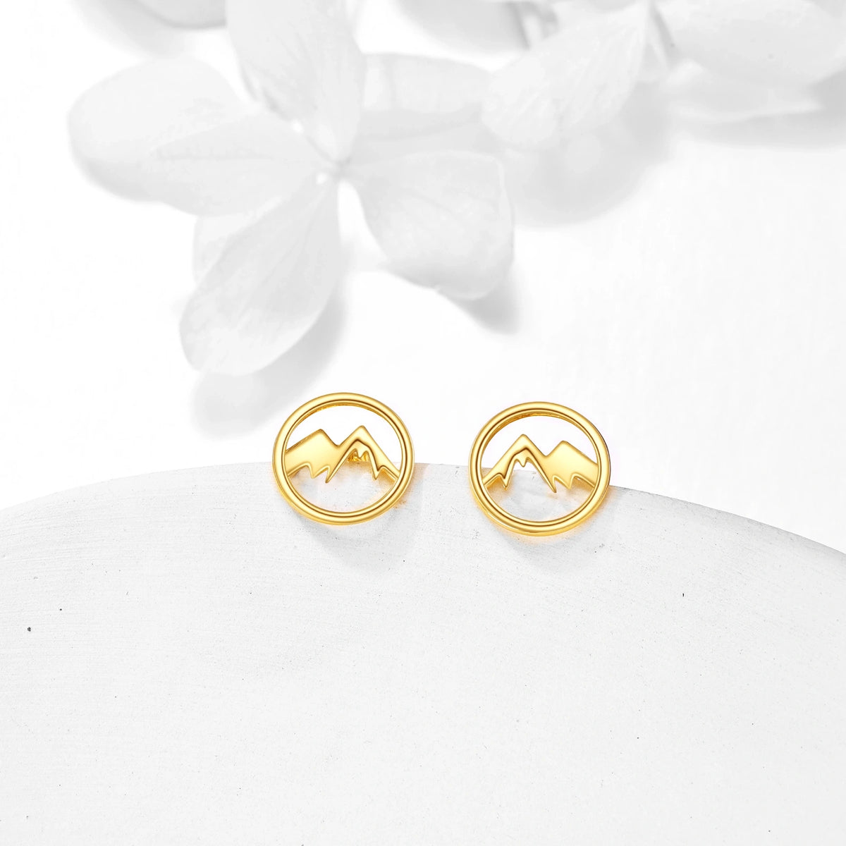 These 14K Gold Earrings Solid Gold Earrings Jewelry Christmas Gifts by YFN are a poetic and delicate piece of fine jewelry that celebrates the beauty of the outdoors. The design captures a Mountain sunrise landscape within a round 14K Gold circle, translating the love for nature into delicate fashion. These solid gold earrings are a beautifully subtle accessory, perfect for adding a touch of delicate, nature-inspired elegance to any daily ensemble, making them an ideal, thoughtful gift.