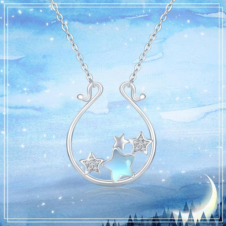 Sterling Silver Moonstone Five-pointed Star Pendant Necklace