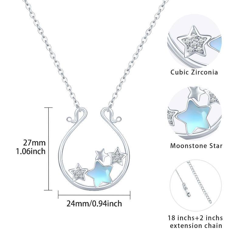 This Pendant Necklace is crafted from Sterling Silver with White Gold Plating, Featuring a Mesmerizing Moonstone and a Delicate Five-pointed Star Pendant.