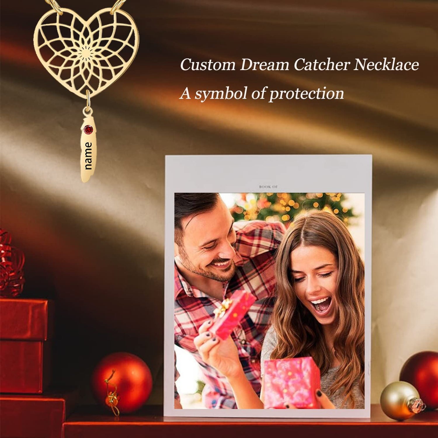 9K Gold Heart Dream Catcher Personalized Name Pendant Necklace for Women