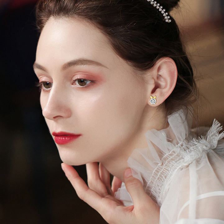 These Stud Earrings are crafted from high-quality 14K Gold in a Circular Shape and feature dazzling Moissanite Gems and a delicate Rabbit Motif.