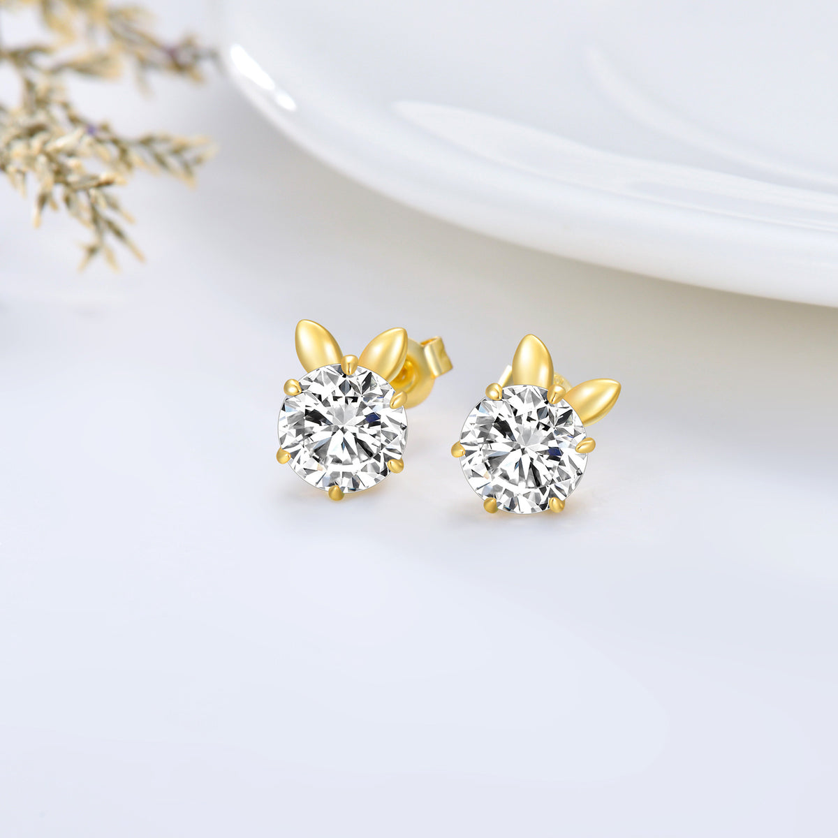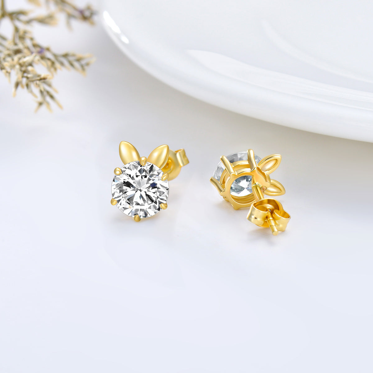 14K Gold Circular Shaped Moissanite Rabbit Stud Earrings