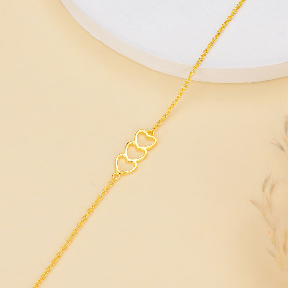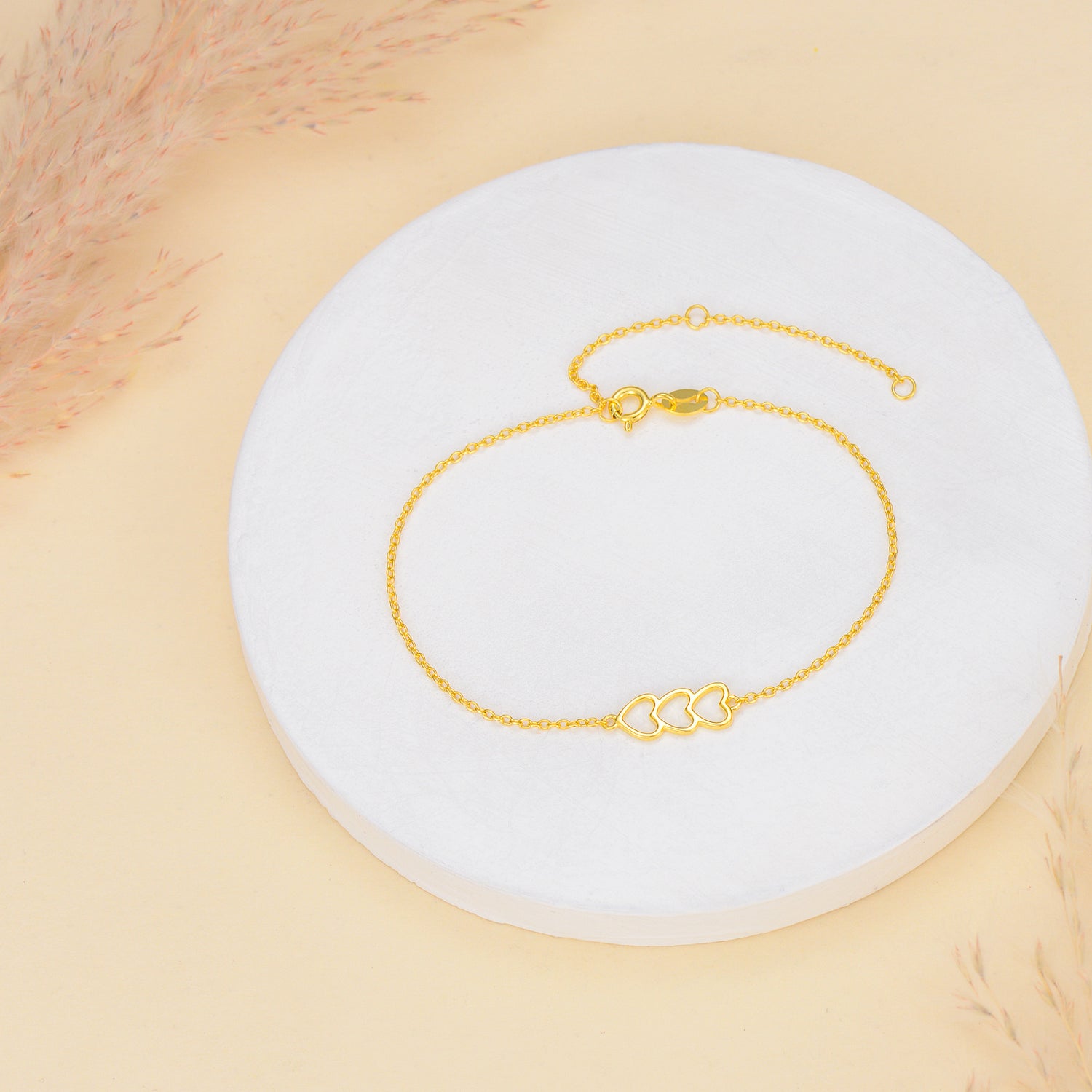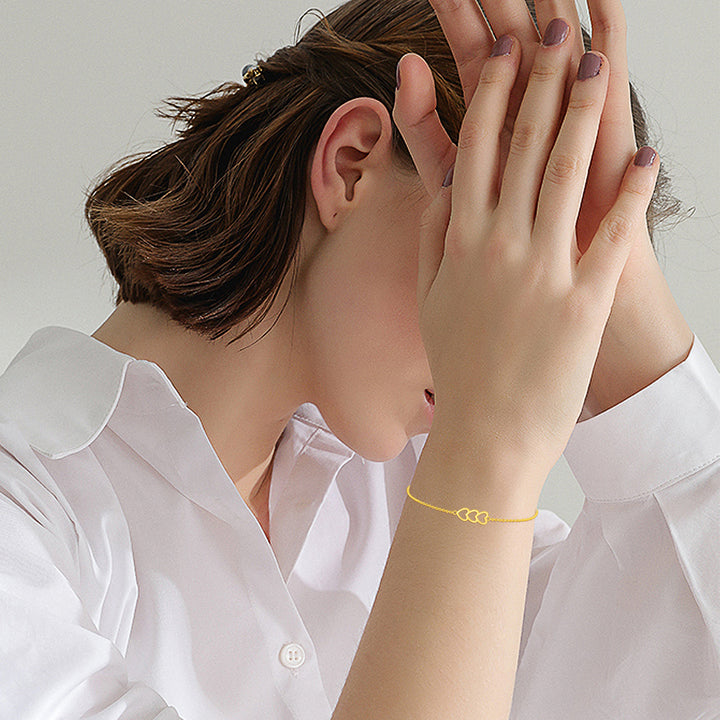 This 14K Gold Heart with Heart Charm Bracelet by YFN offers a graceful expression of love and simplicity. Designed for women who appreciate clean, minimal aesthetic, the bracelet features an elegant double-heart motif symbolizing unity and affection. Crafted entirely from radiant 14K gold, it delivers enduring beauty and a luxurious feel, perfect for everyday wear or meaningful gifting. The lightweight, adjustable design ensures a comfortable custom fit, while its stone-free elegance makes it ideal for layering or wearing alone. With timeless appeal, this bracelet becomes a subtle yet powerful emblem of connection.