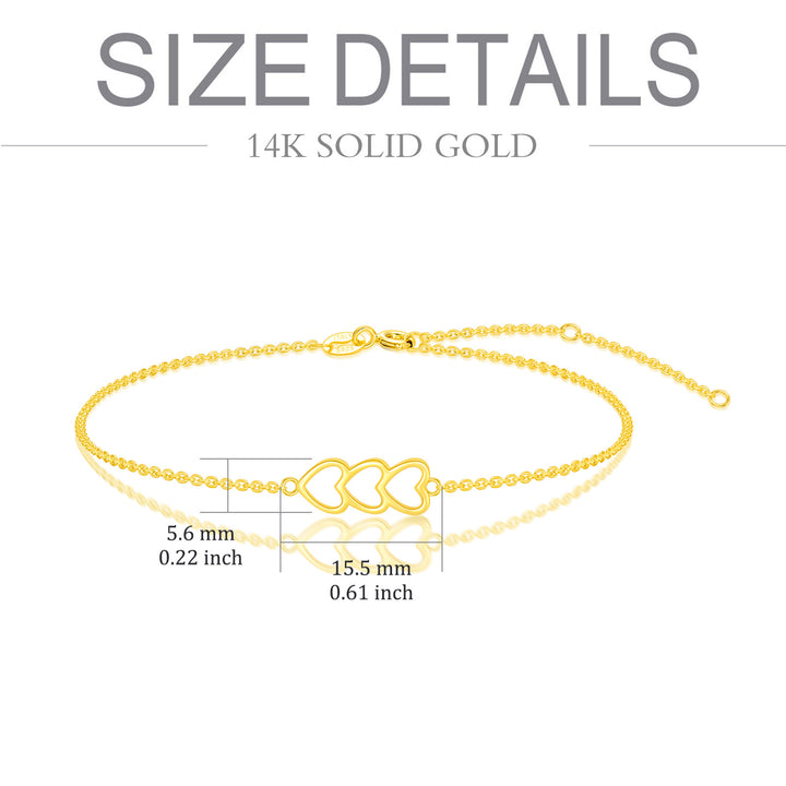 14K gold. Heart-with-heart charm. Adjustable bracelet chain.