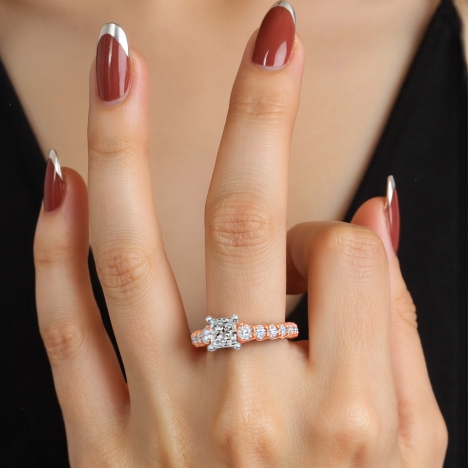 14K Rose Gold 1 to 3.5 CT. T.W Princess Lab Created Diamond Engagement Ring D VVS1-VS1 Clarity 3EX IGI Certified