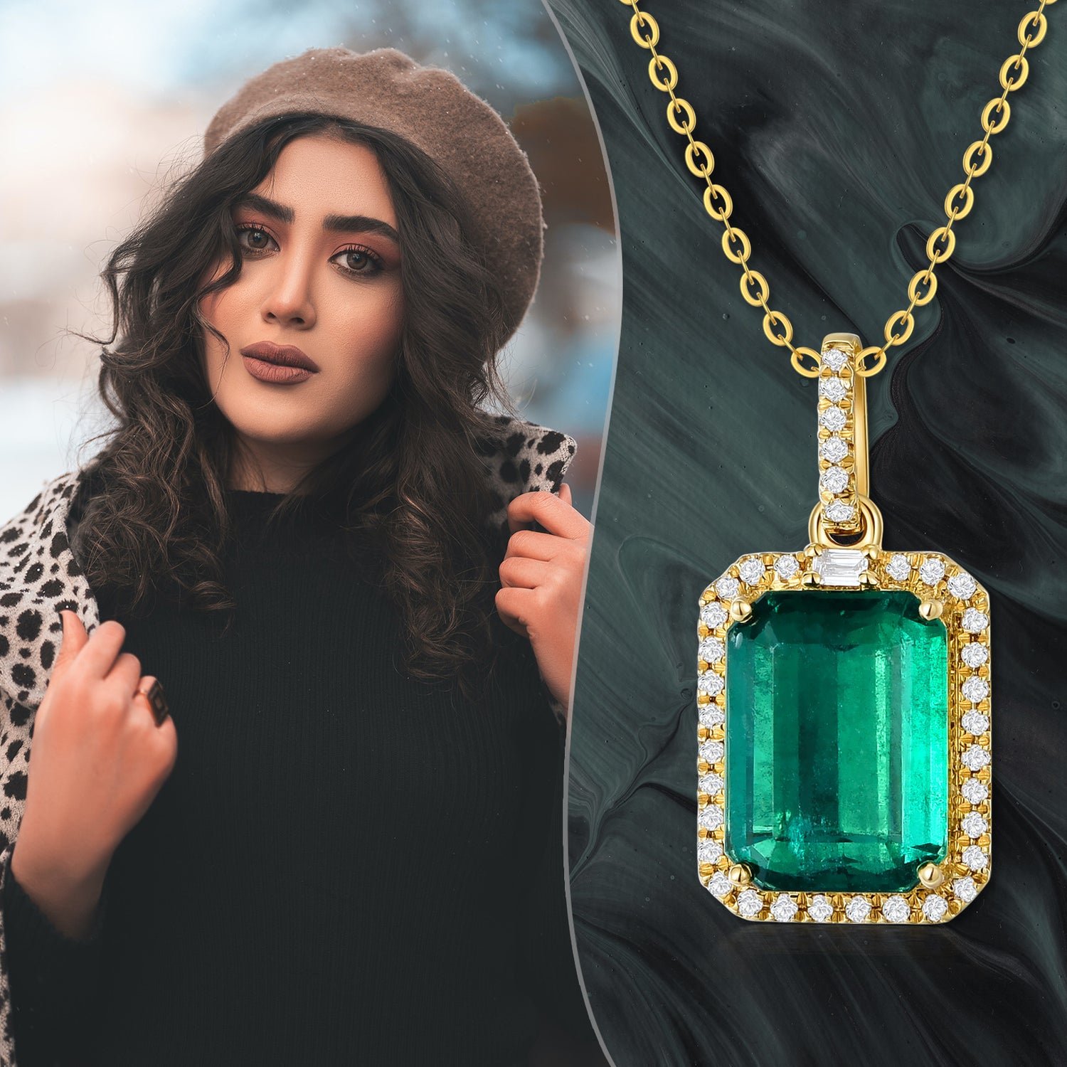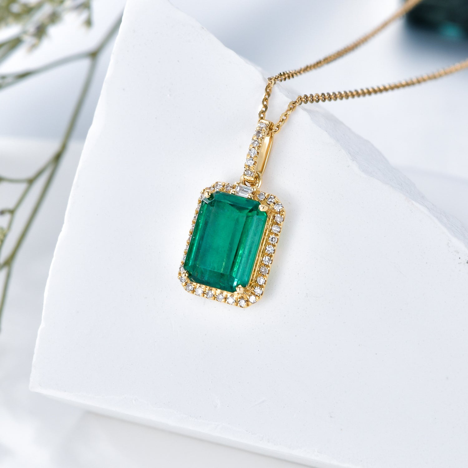 This 18K Gold Emerald Square Pendant Necklace by YFN is a luxurious, sophisticated accessory for modern women. Crafted with 18K gold, this pendant necklace showcases a gleaming square emerald that captures the eye with its vibrant green hues. The rich gold setting enhances the stone's beauty, providing durability and a polished, timeless appeal for any sophisticated wardrobe.