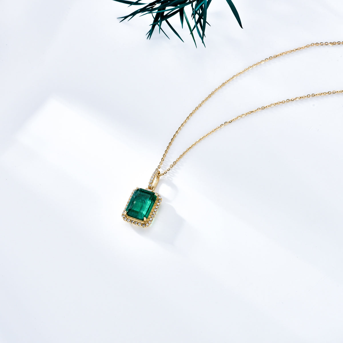 18K Gold Emerald Square Pendant Necklace