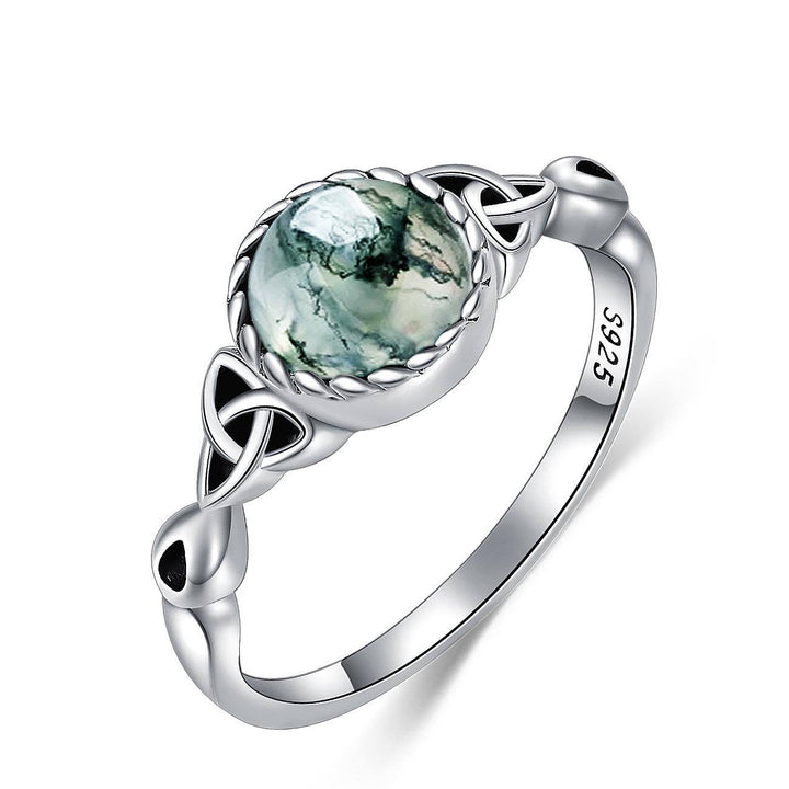 Sterling Silver Moss Agate Celtic Knot Ring