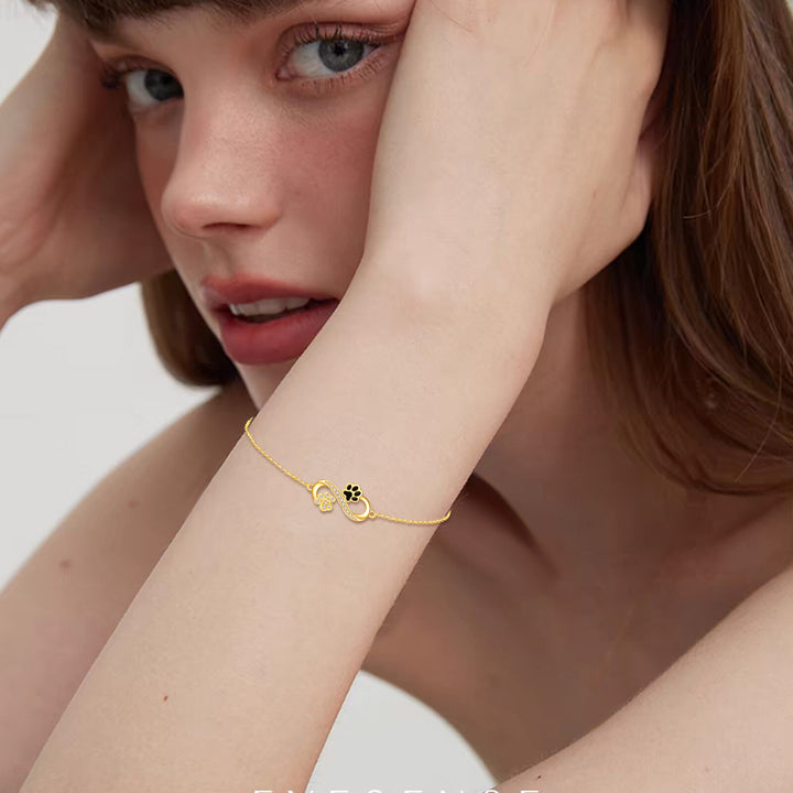 Crafted from solid 14K Gold. This is a Charm Bracelet featuring Paw & Infinity Symbol charms, set with Cubic Zirconia stones.