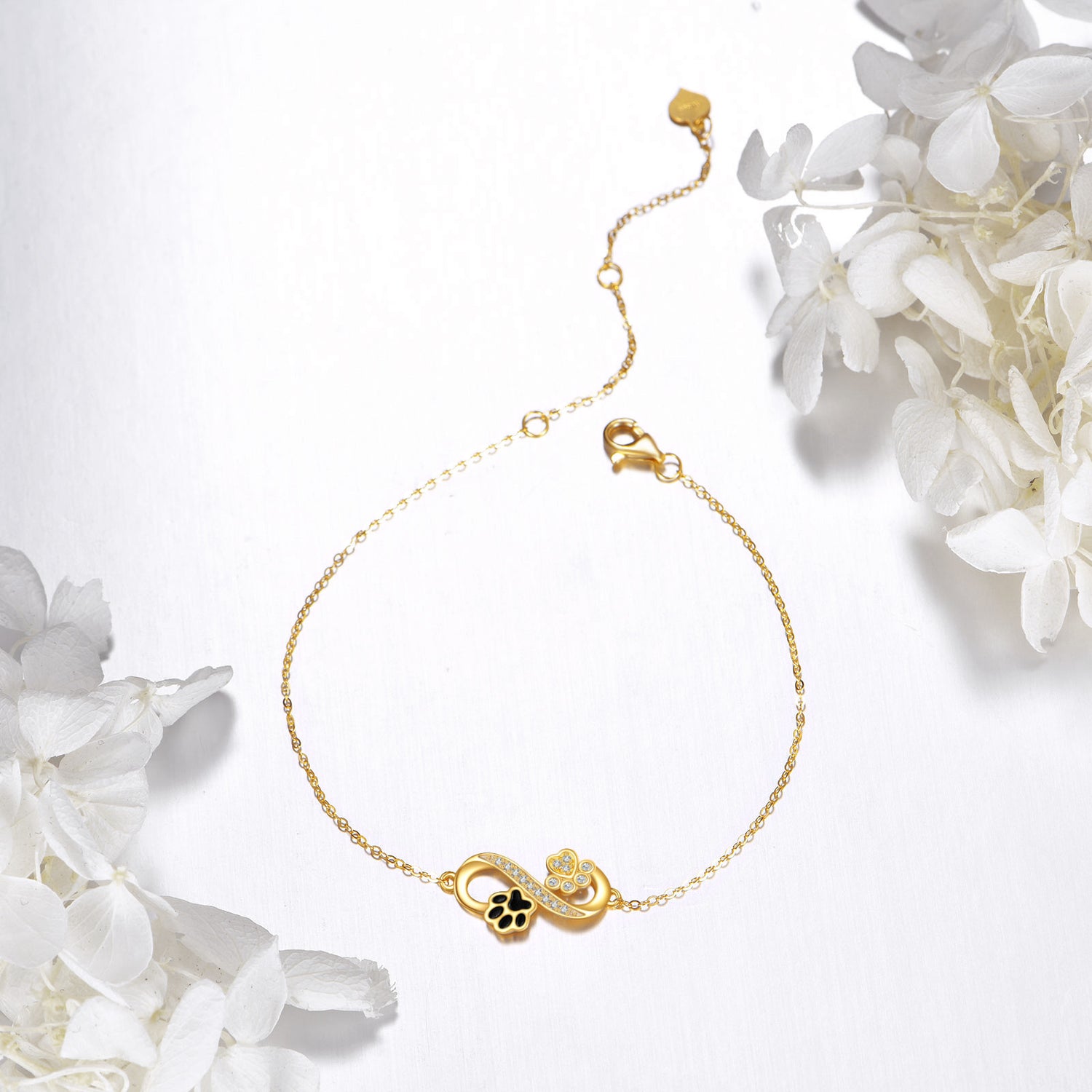 14K Gold Cubic Zirconia Paw & Infinity Symbol Charm Bracelet