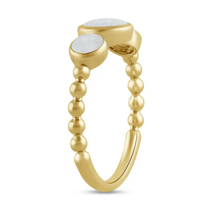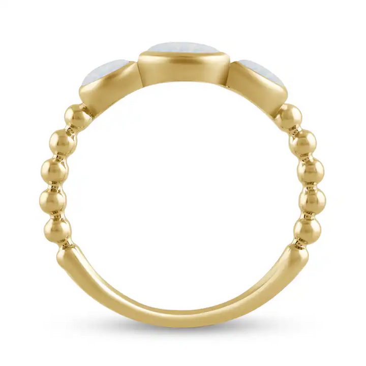 10K Gold Lab-Created Opal Bezel-Set Three Stone Bead Shank Custom Band for Women