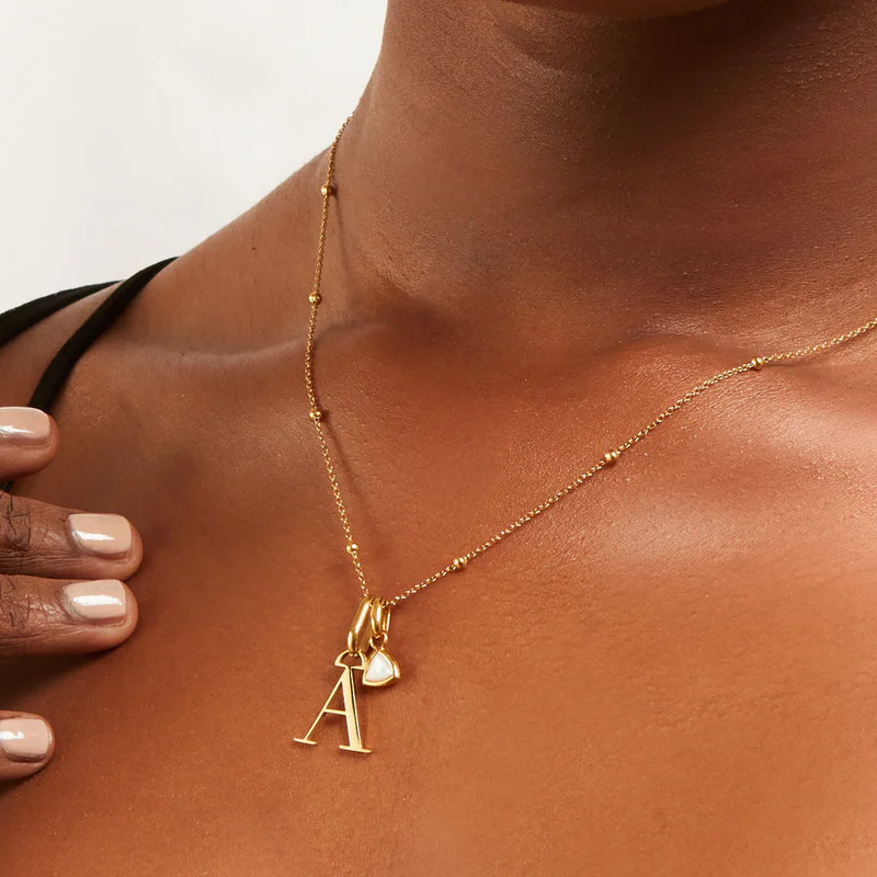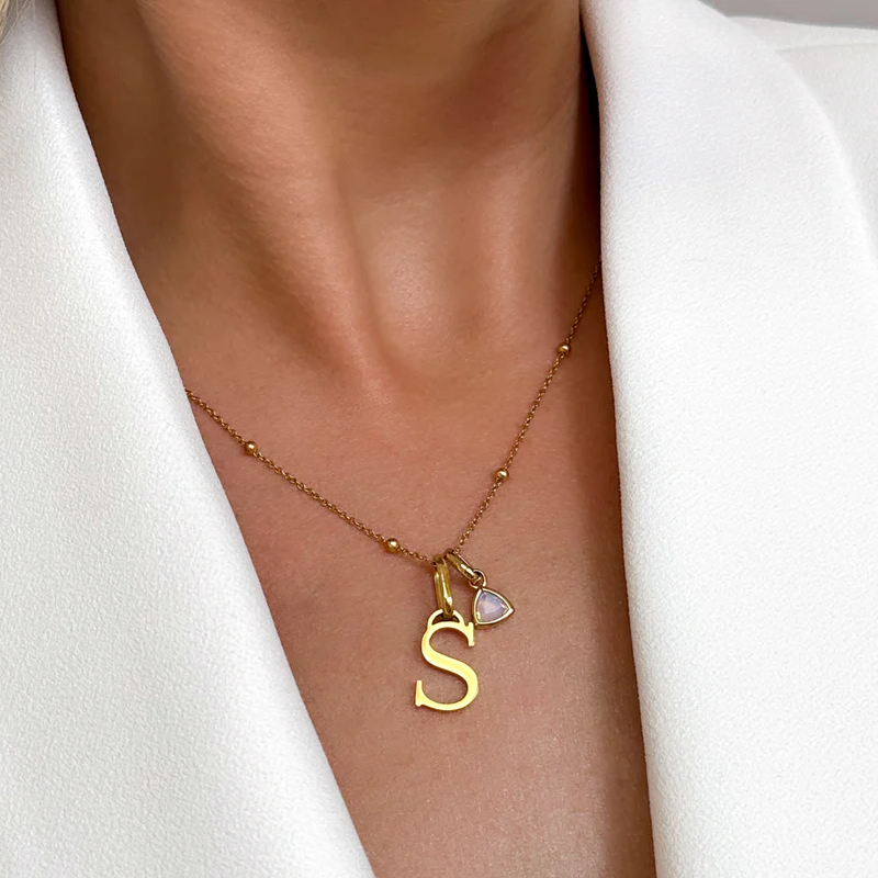 14K Gold Personalized Birthstone Initial Necklace for Women
