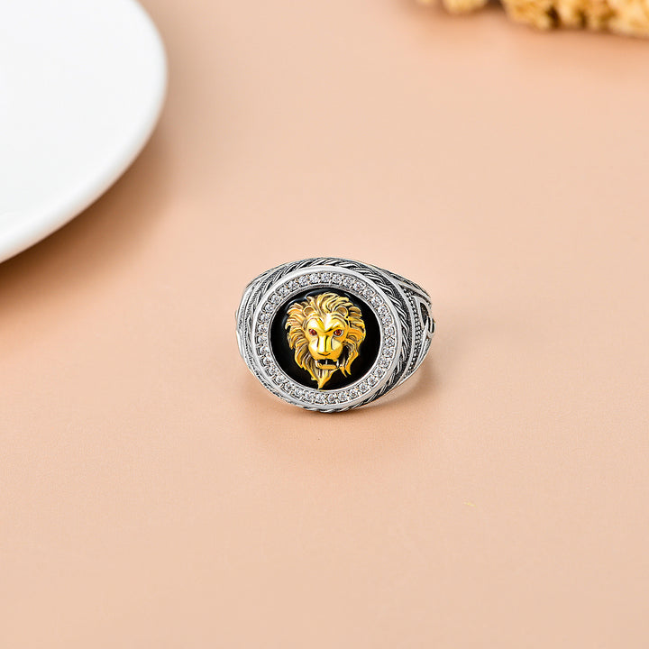 Sterling Silver Two-tone Cubic Zirconia Lion Signet Ring