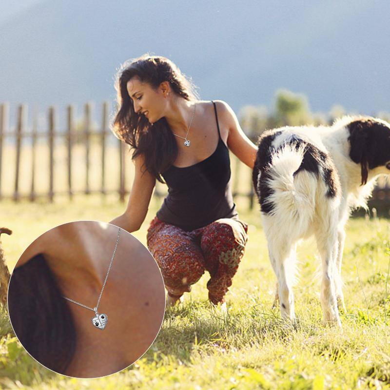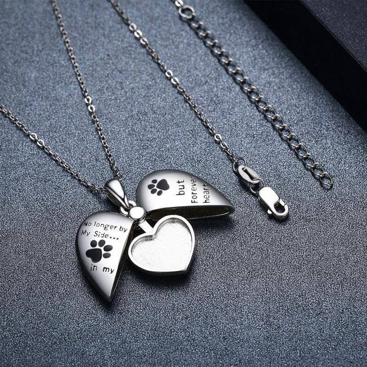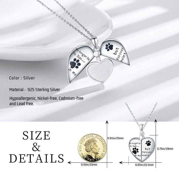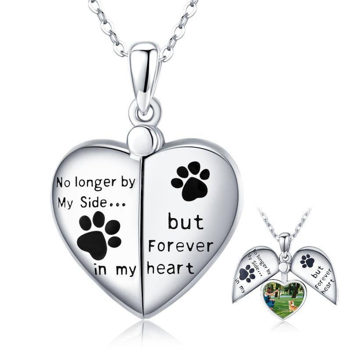 This Sterling Silver Dog Cat Paw Personalized Photo Locket Necklace with Engraved Word by YFN serves as a heartfelt tribute to the pets who leave lasting imprints on our hearts. Designed for women, the locket features a delicate paw motif and a touching inscription: “No Longer By My Side... but Forever In My Heart.” White gold plating adds refined brilliance, while the interior photo compartment allows the cherished memory of a beloved pet to be kept close. This timeless keepsake blends sentiment, elegance, and remembrance in one meaningful accessory.