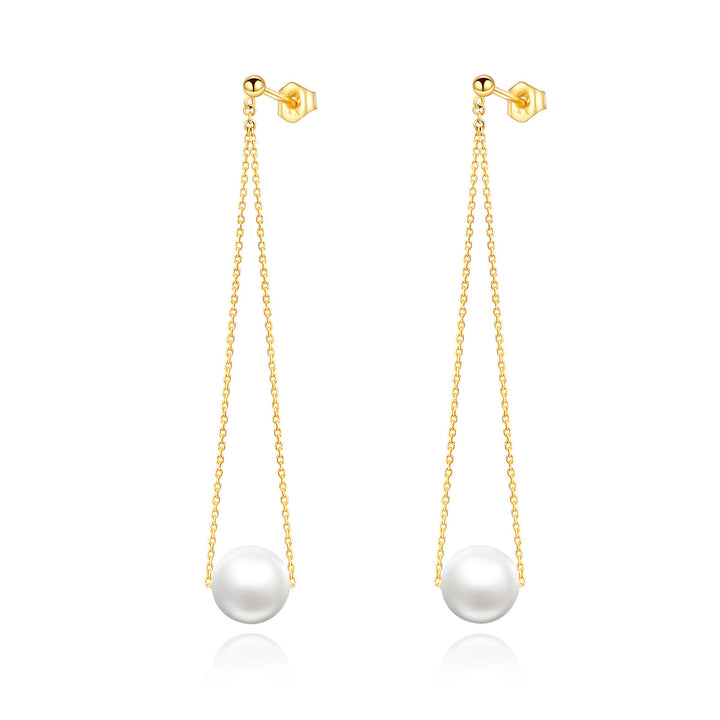 These Drop Earrings are crafted from Genuine 14K Gold, Adorned with Lustrous Pearls.