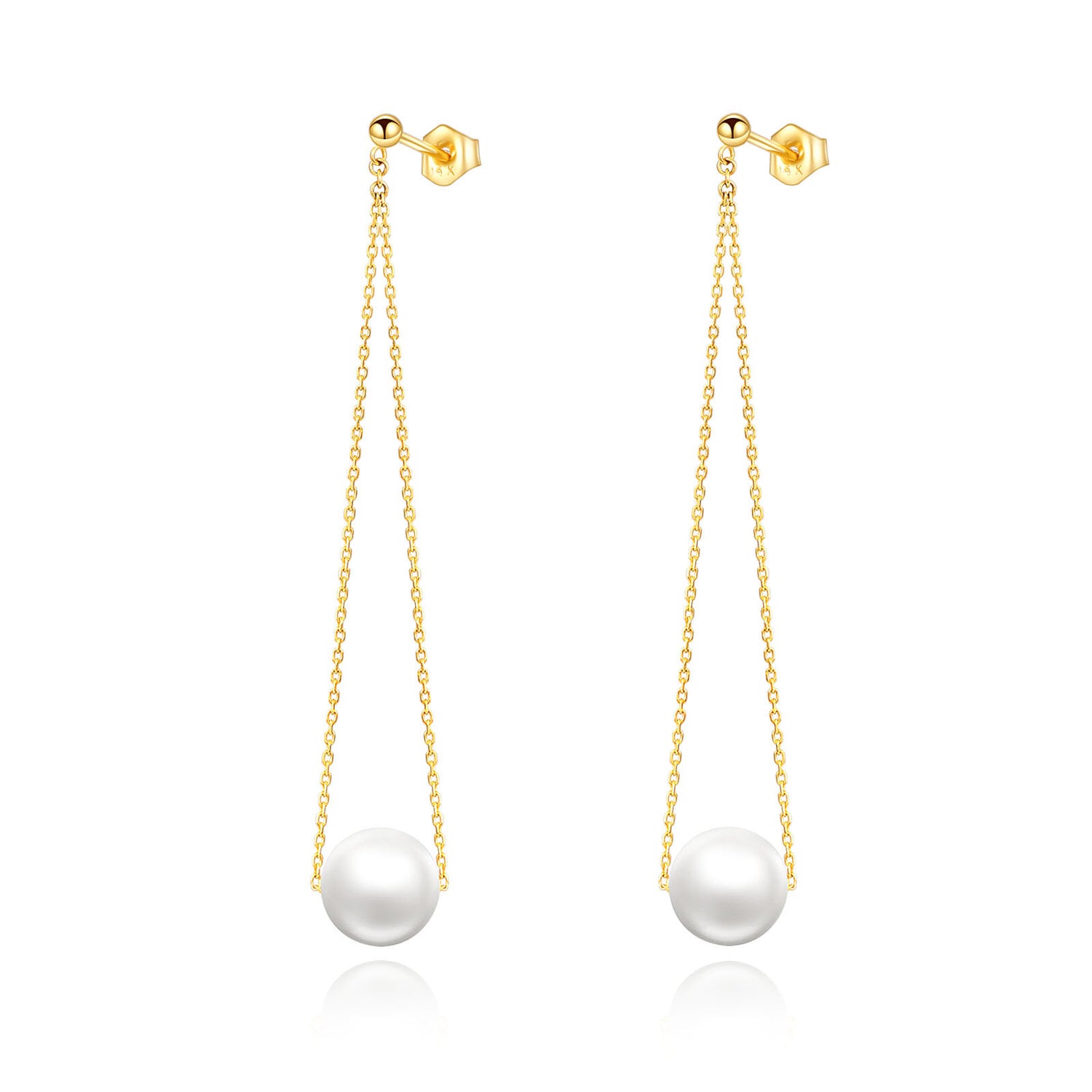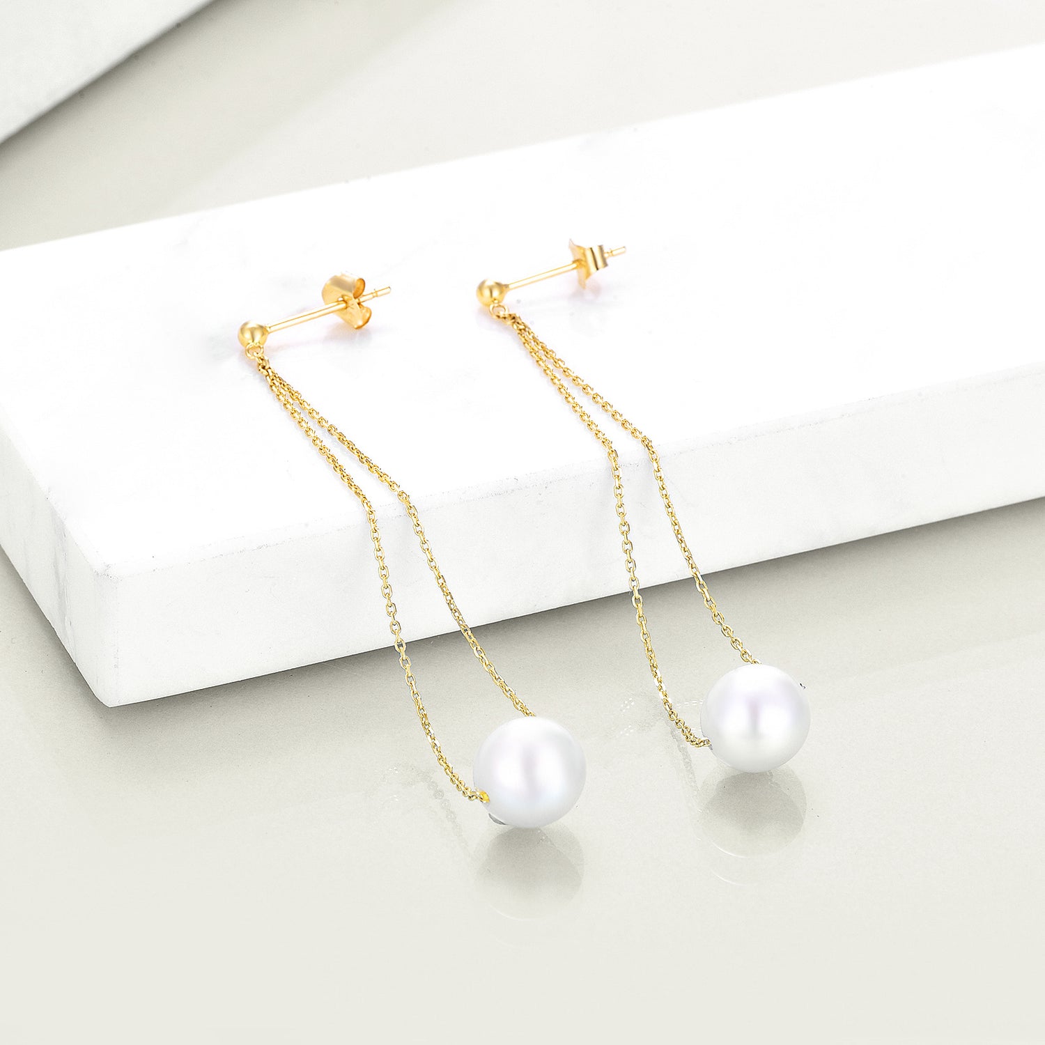 These 14K Gold Pearl Drop Earrings by YFN are exquisite drop earrings for women, appreciating timeless elegance and luxury. Made with genuine 14K gold, each earring is adorned with a pristine Pearl, exuding classic beauty and grace, making them a must-have accessory for any occasion.