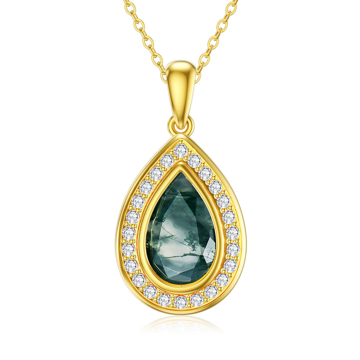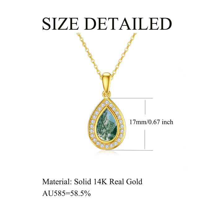 14K Gold Moss Agate Drop Shape Pendant Necklace