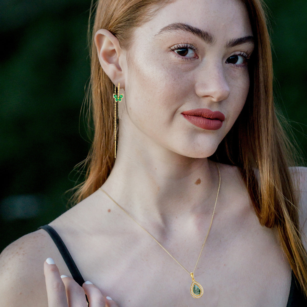 This 14K Gold Moss Agate Drop Shape Pendant Necklace by YFN is an exquisite fusion of natural beauty and luxurious craftsmanship, designed for women who appreciate refined elegance. The drop-shaped moss agate centerpiece showcases captivating organic patterns that reflect serenity and individuality. Encased in radiant 14K gold, its rich hues beautifully enhance the gemstone’s earthy charm. This timeless piece transitions effortlessly from everyday sophistication to special occasions, making it a versatile and cherished addition to any jewelry collection. Elegant, feminine, and distinct, it celebrates the art of nature through premium craftsmanship.