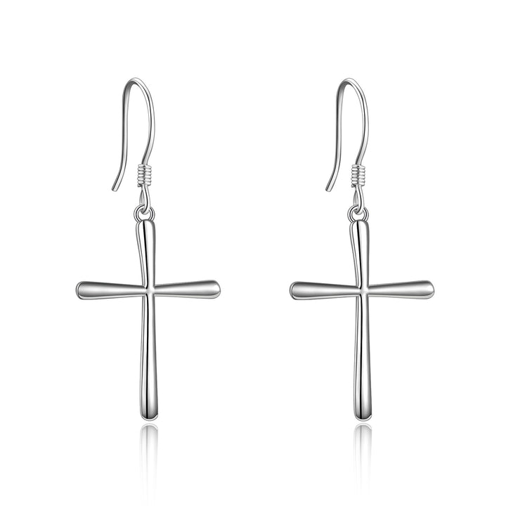 These no-stone Women's Drop Earrings are crafted from Sterling Silver, featuring a Cross Design and finished with White Gold Plating.