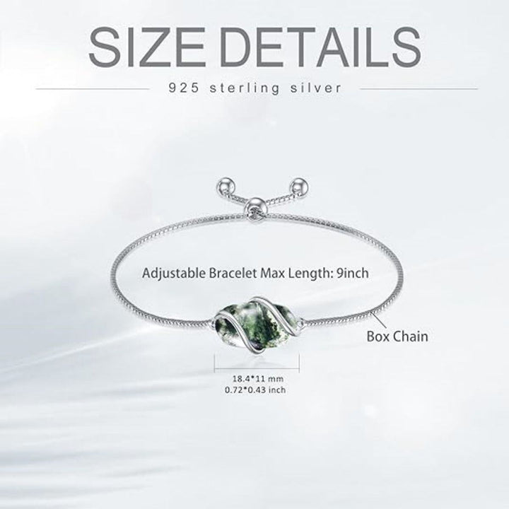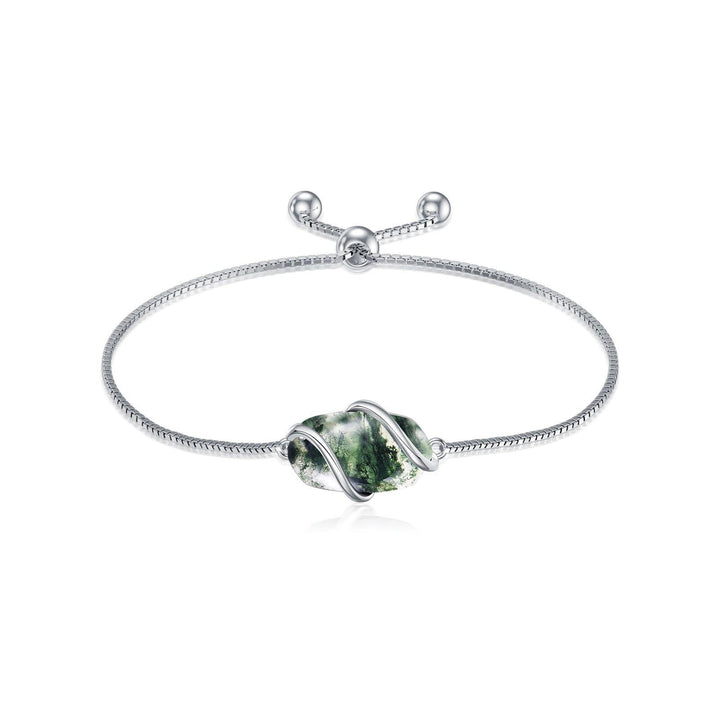 Sterling Silver Oval Shaped Moss Agate Charm Bracelet