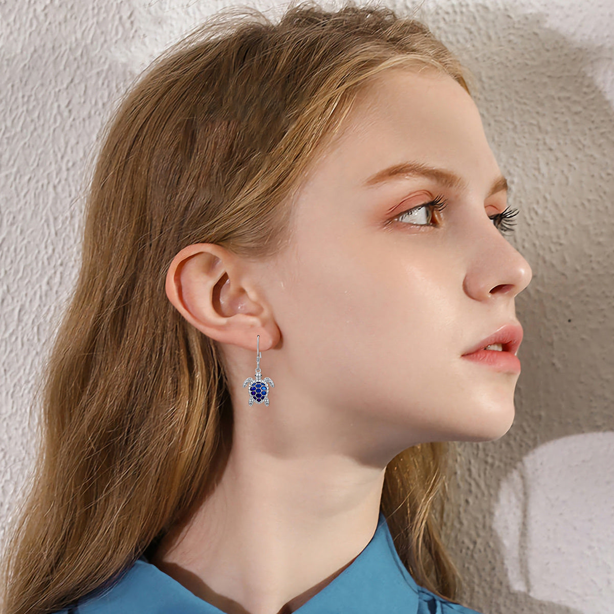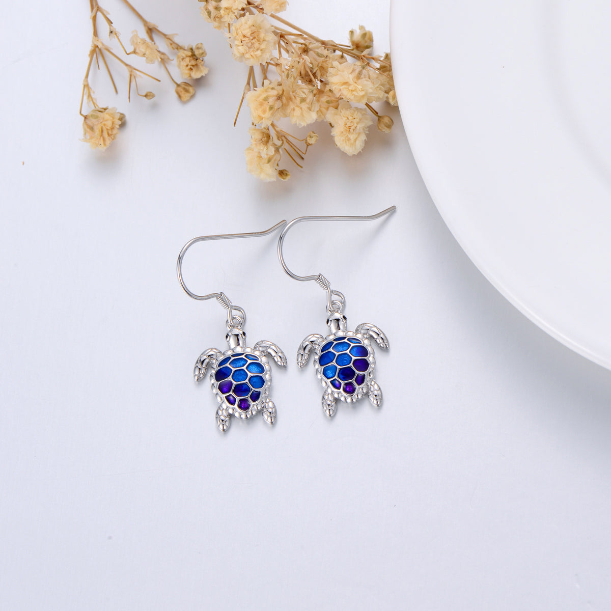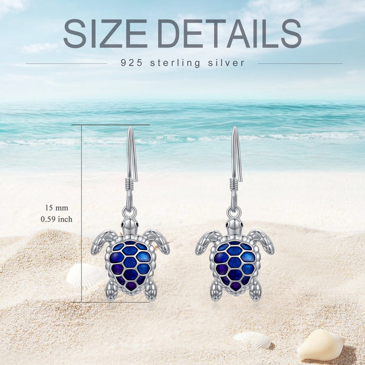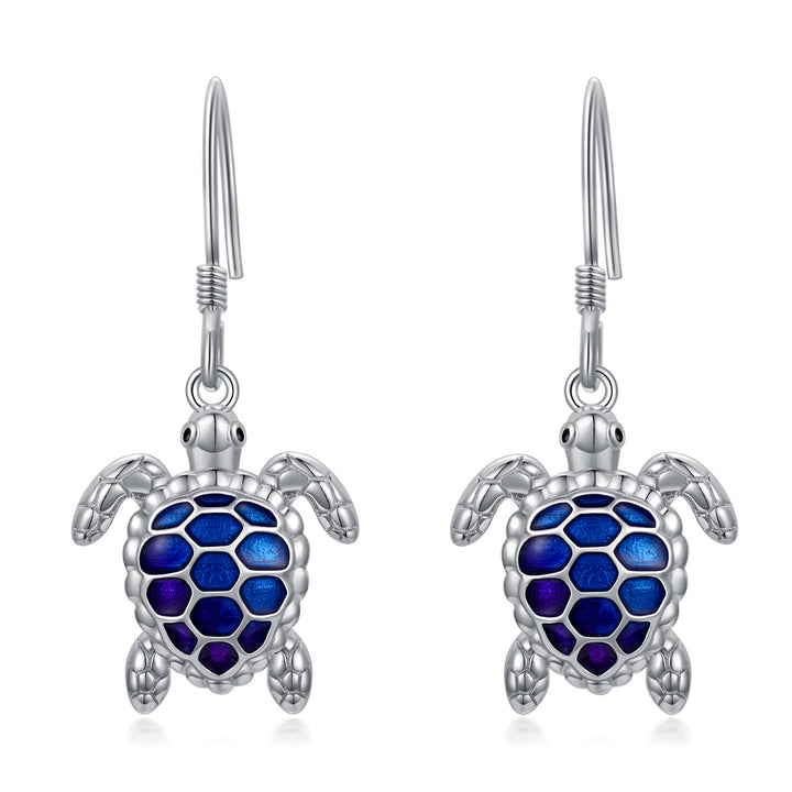 Crafted from premium Sterling Silver and White Gold Plated, these stone-free Drop Earrings feature a detailed Sea Turtle design.