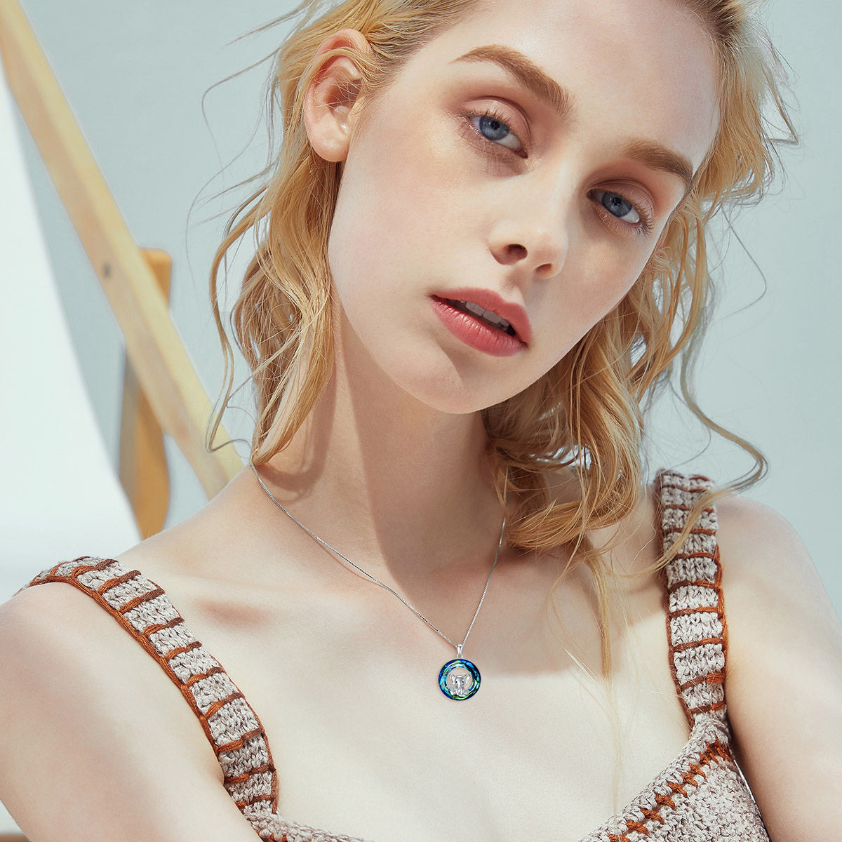 This Sterling Silver Circular Shaped Elephant Crystal Pendant Necklace by YFN is a sophisticated and charming accessory. The circular pendant features a mesmerizing blue crystal and a delicate elephant motif, all white gold plated. It offers a dazzling, whimsical aesthetic, embodying a harmonious blend of elegance and playful symbolism, perfect for the woman who loves unique, meaningful sparkle.