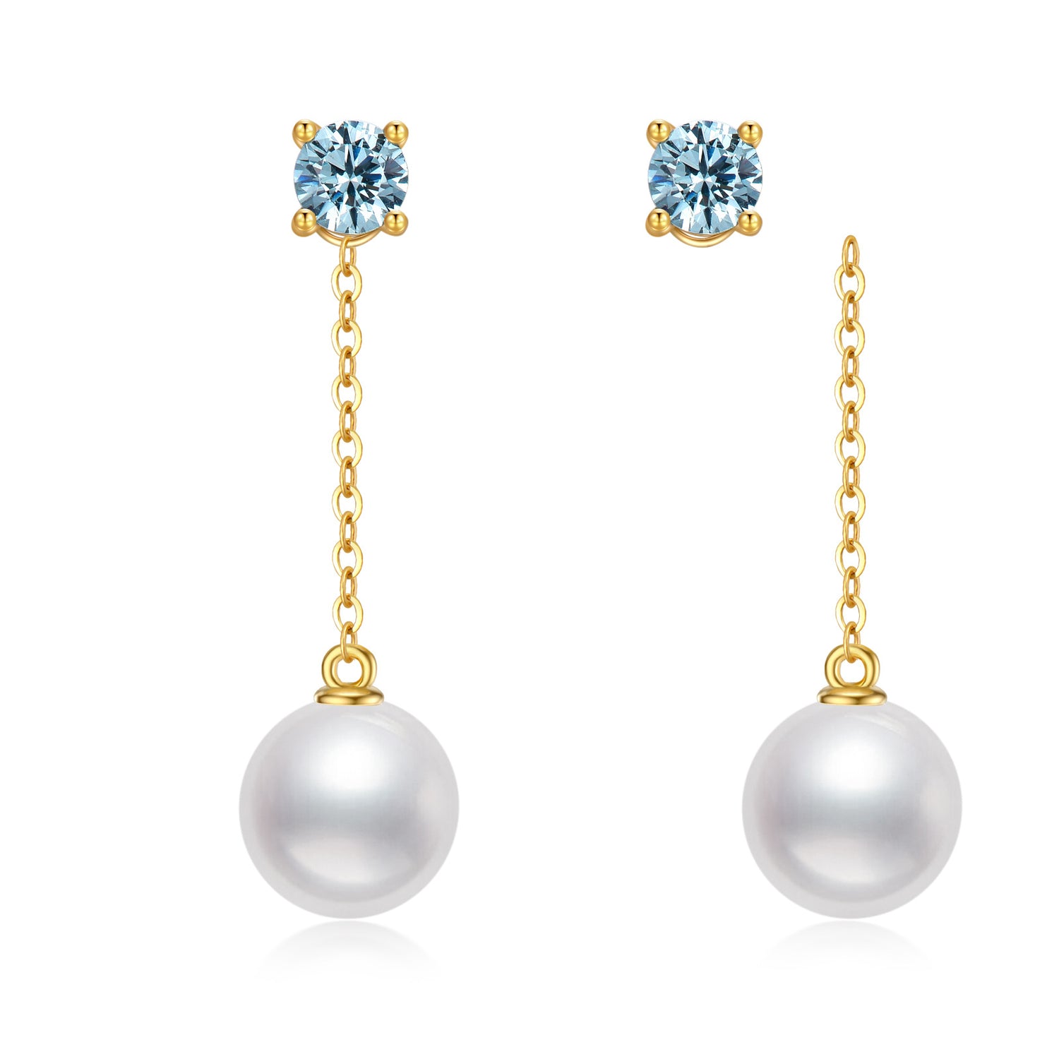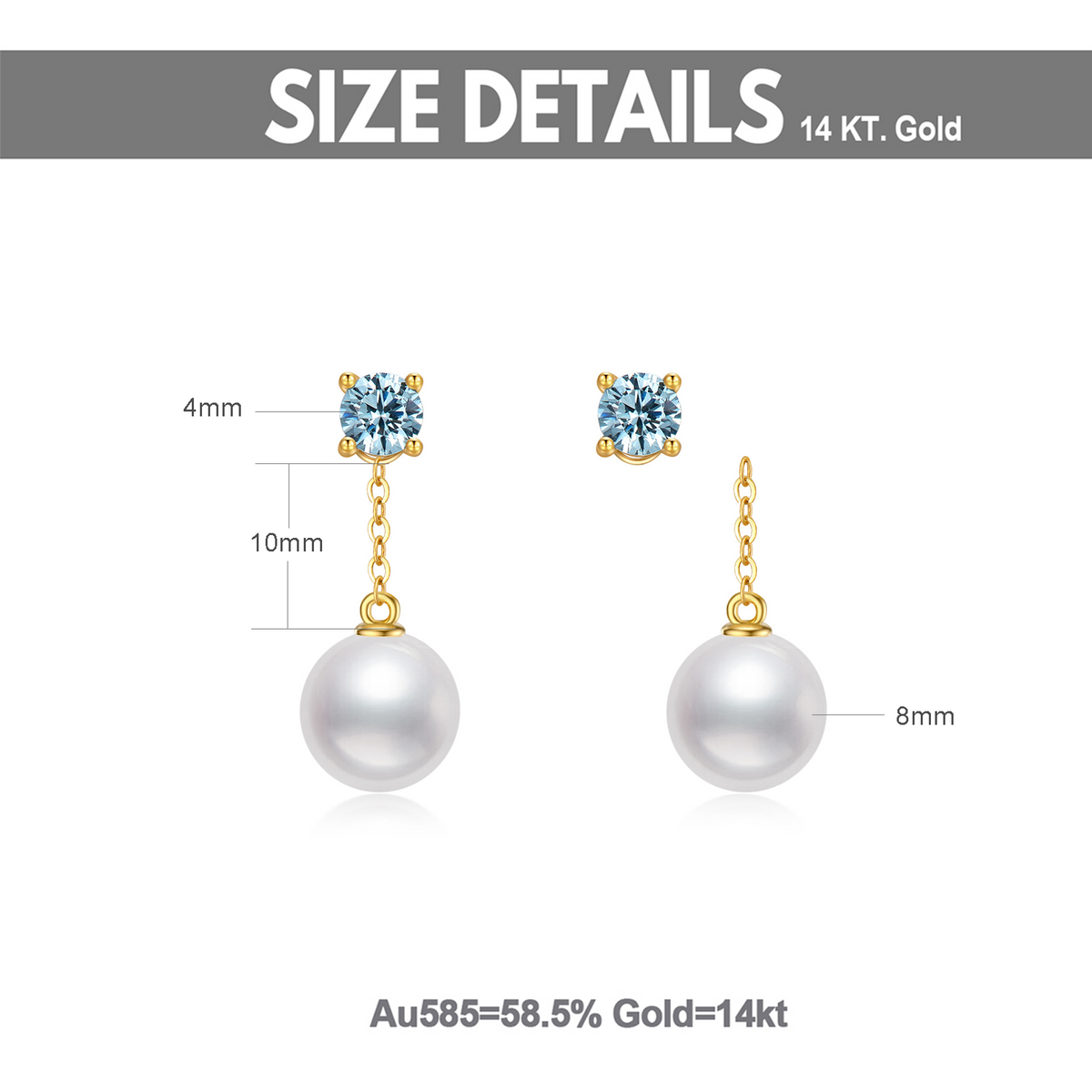 14K Gold Round Topaz & Pearl Drop Earrings For Women Best Friends
