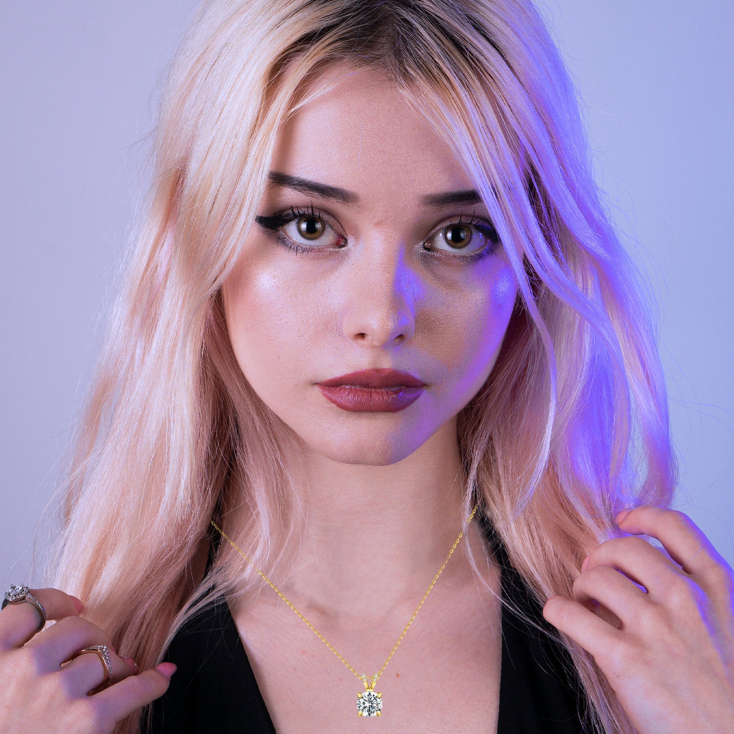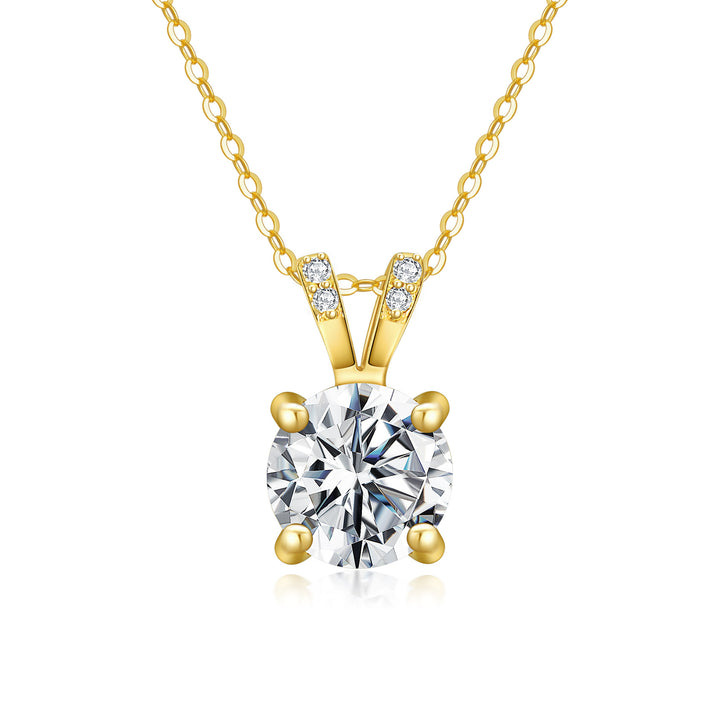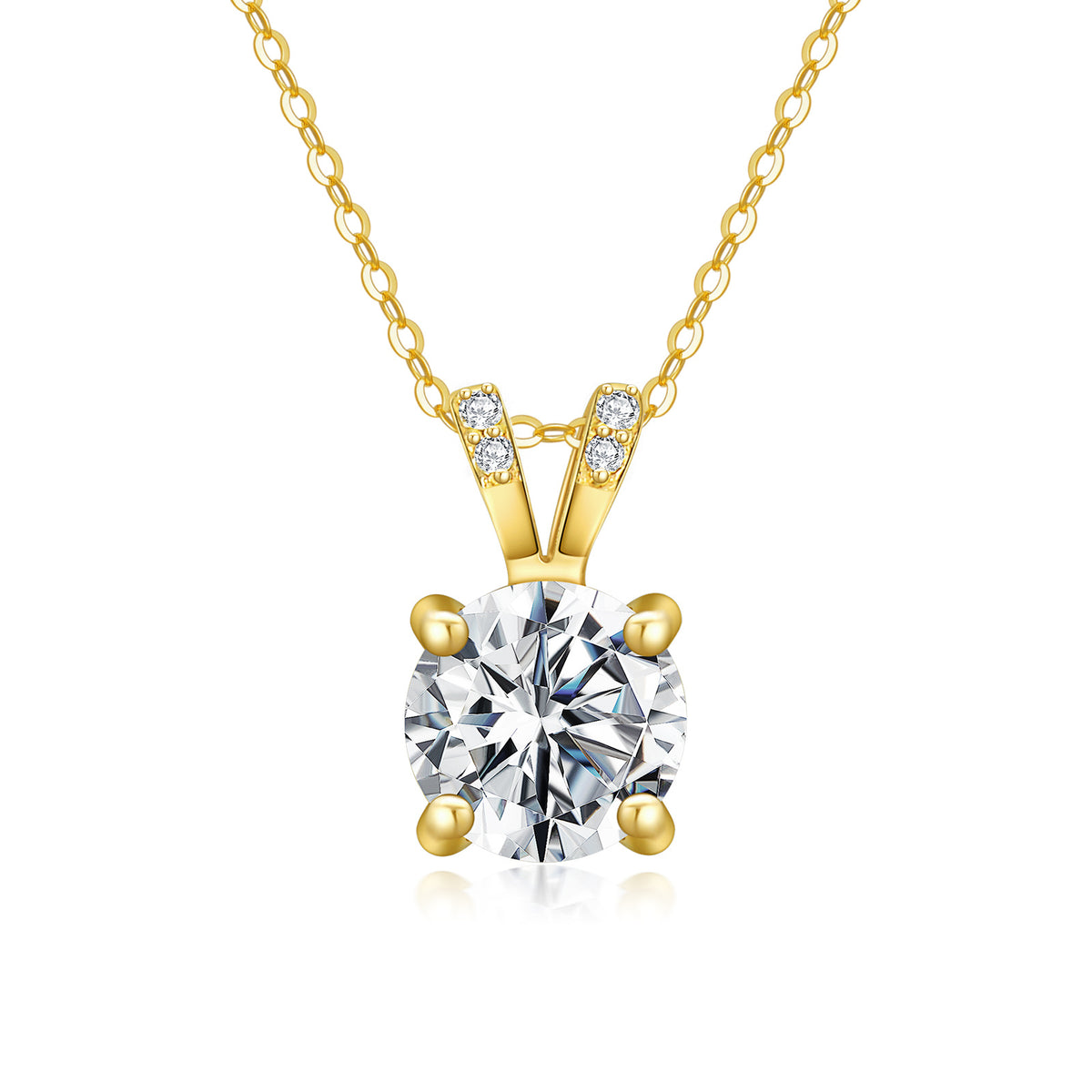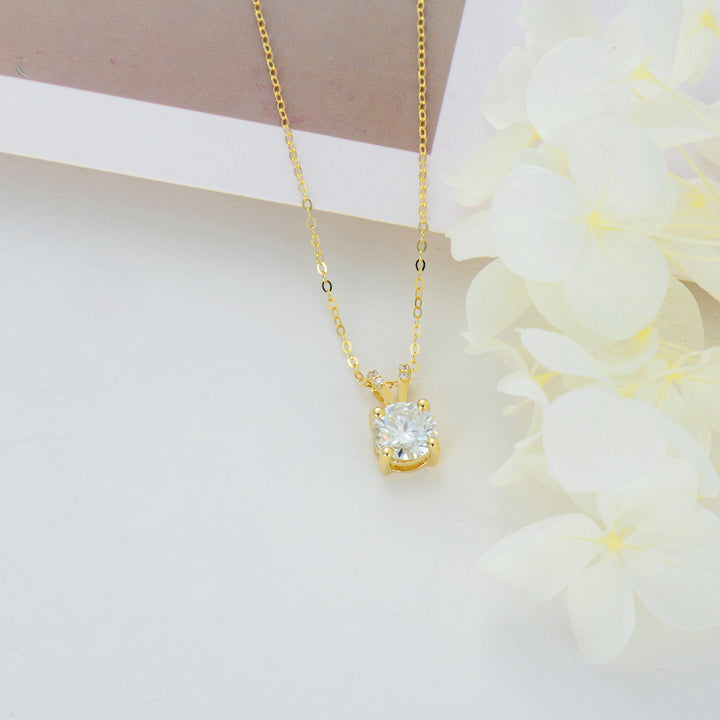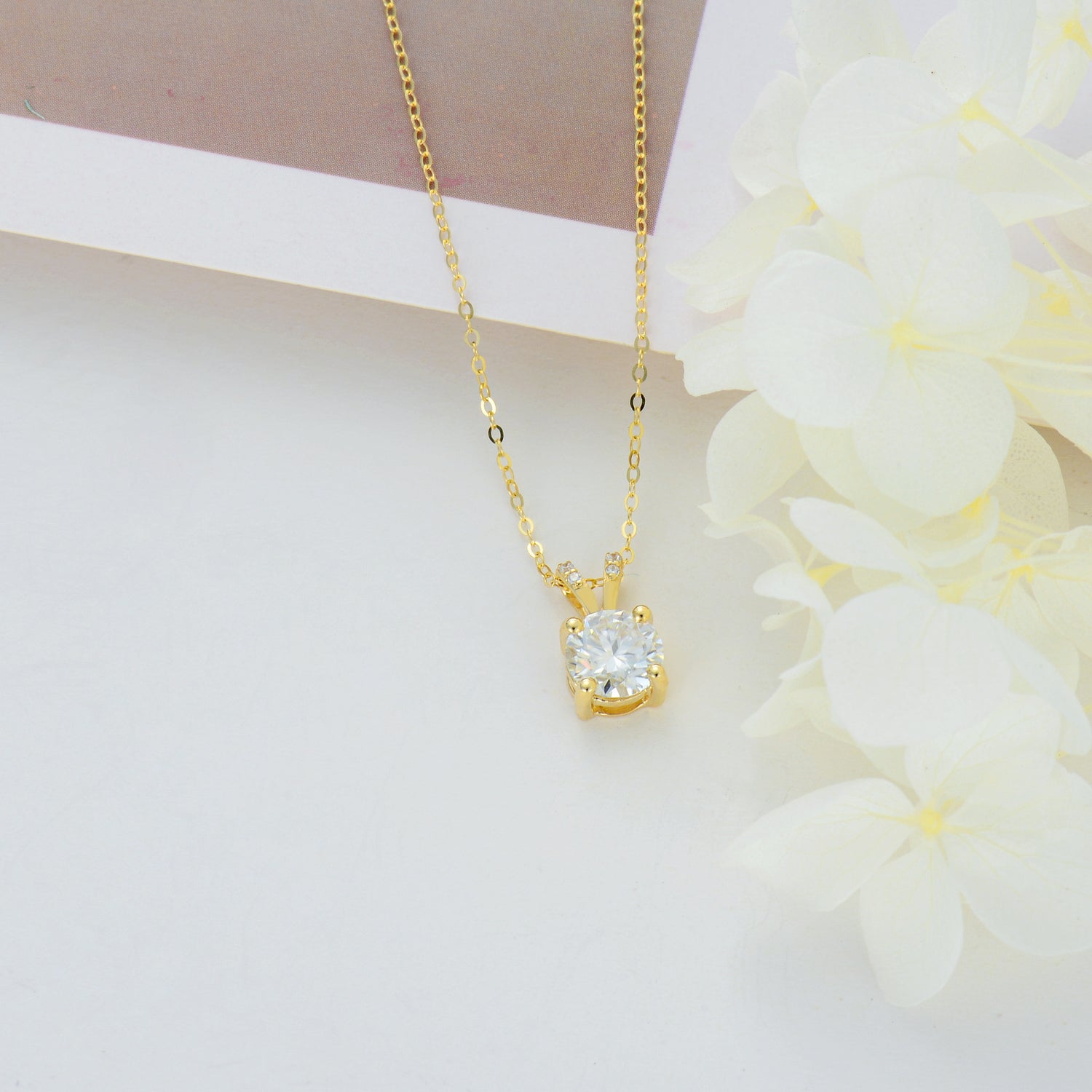 This 14K Gold Round Moissanite Pendant Necklace by YFN radiates brilliance with a dazzling round Moissanite that rivals the fire of a diamond. Set in solid gold, it offers timeless elegance and exceptional sparkle for women who appreciate classic luxury.