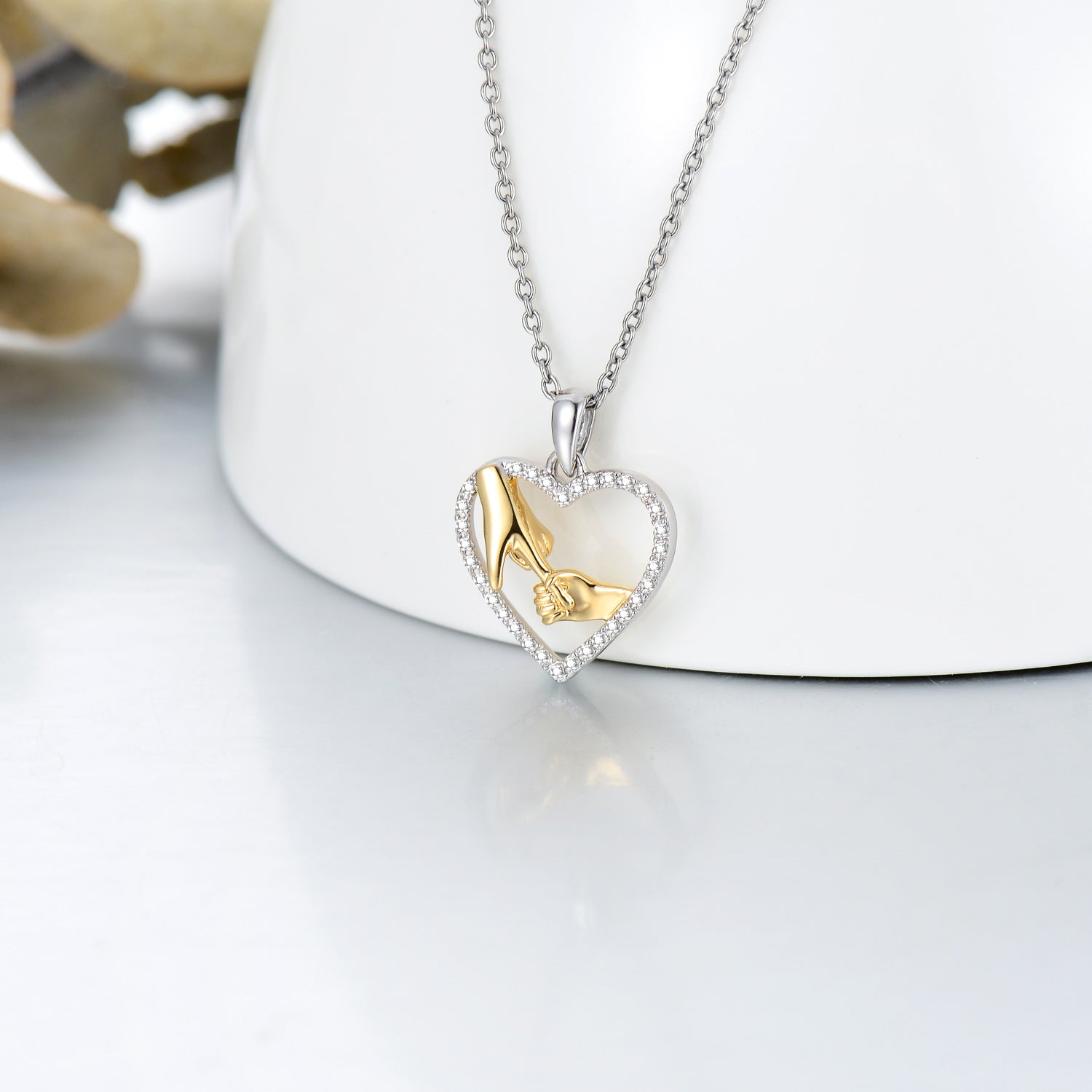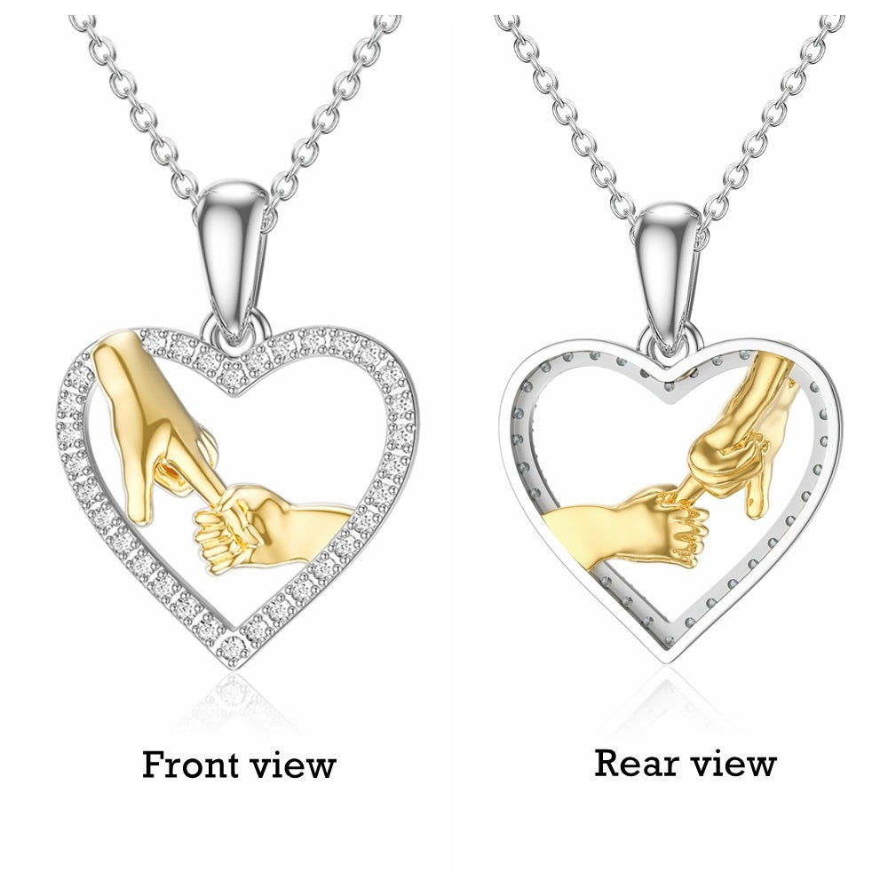 14K Gold Two Tone Round Moissanite Hold Hands Heart Pendant Necklace For Women
