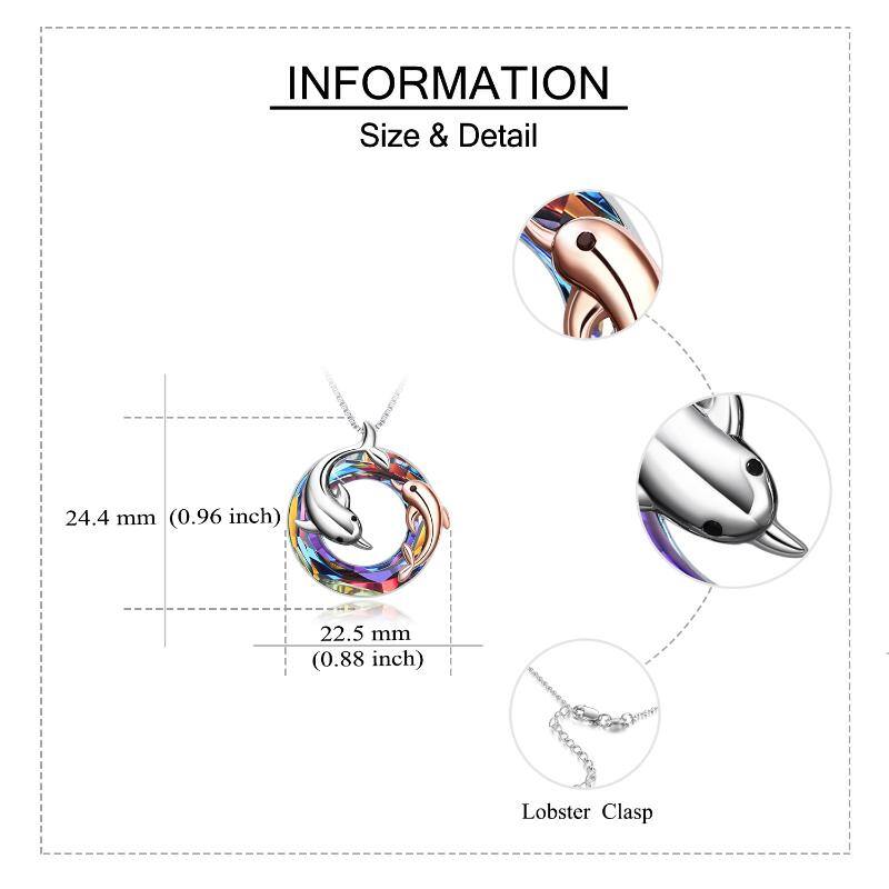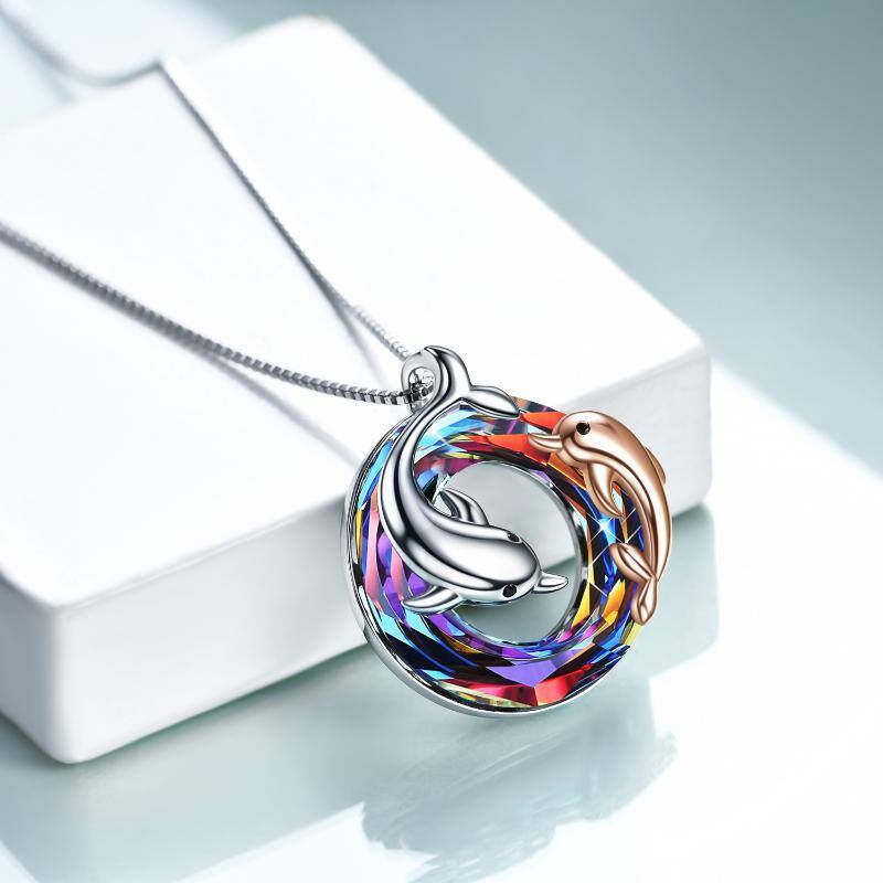 This Sterling Silver Crystal Pendant Necklace by YFN is an enchanting accessory designed for women who appreciate elegance and whimsy. This exquisite piece features a beautifully detailed dolphin motif, expertly crafted within a round shape and adorned with sparkling crystals. The harmonious blend of silver and rose gold tones adds a sophisticated touch, making this necklace a versatile accessory that effortlessly complements any outfit while celebrating a unique sense of fashion.
