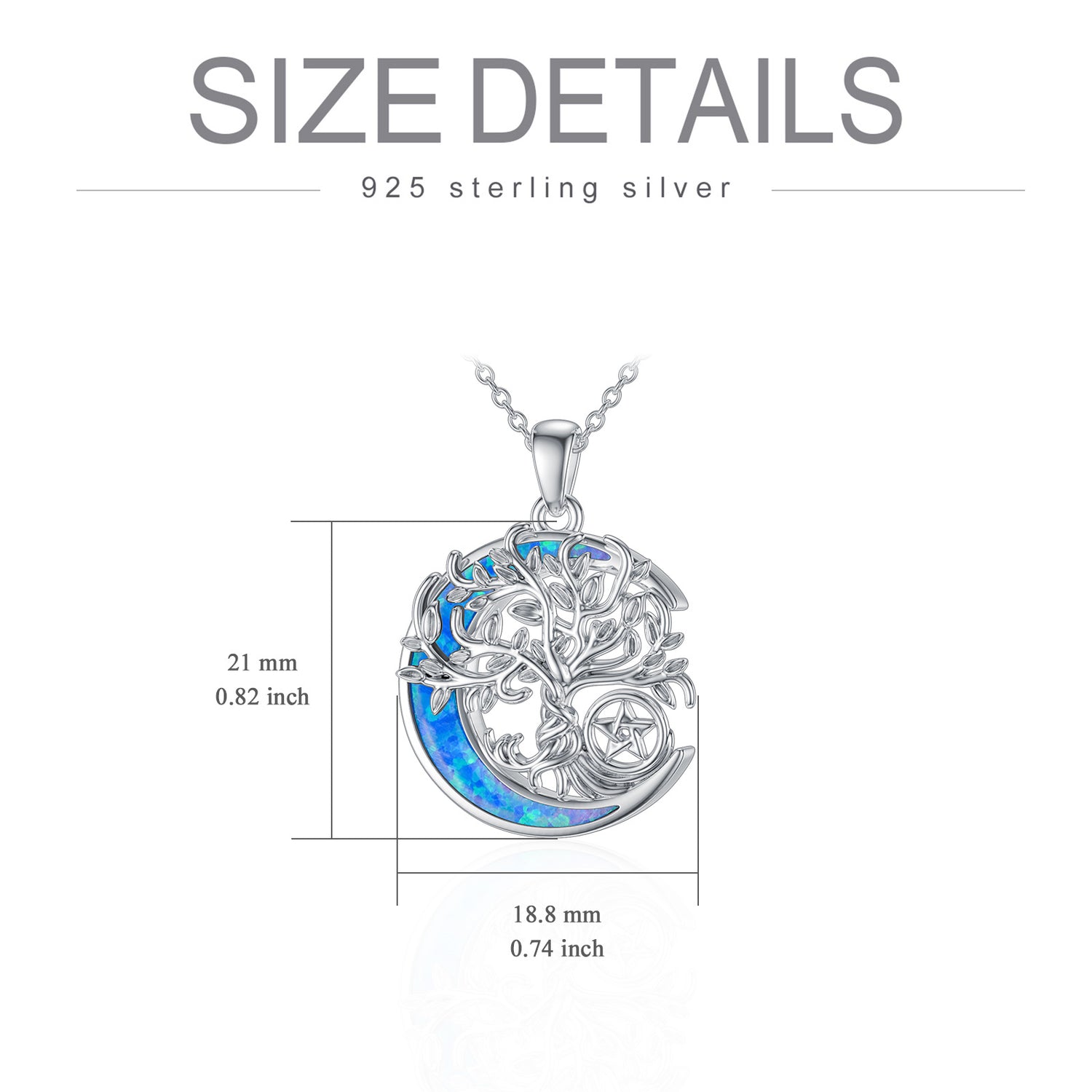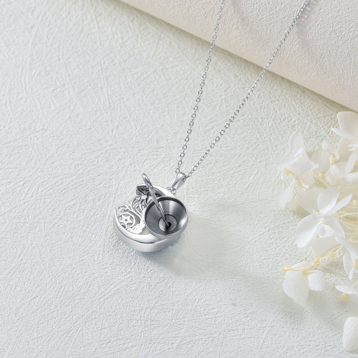 Sterling Silver Opal Tree Of Life & Moon Pentacle Urn Necklace for Ashes