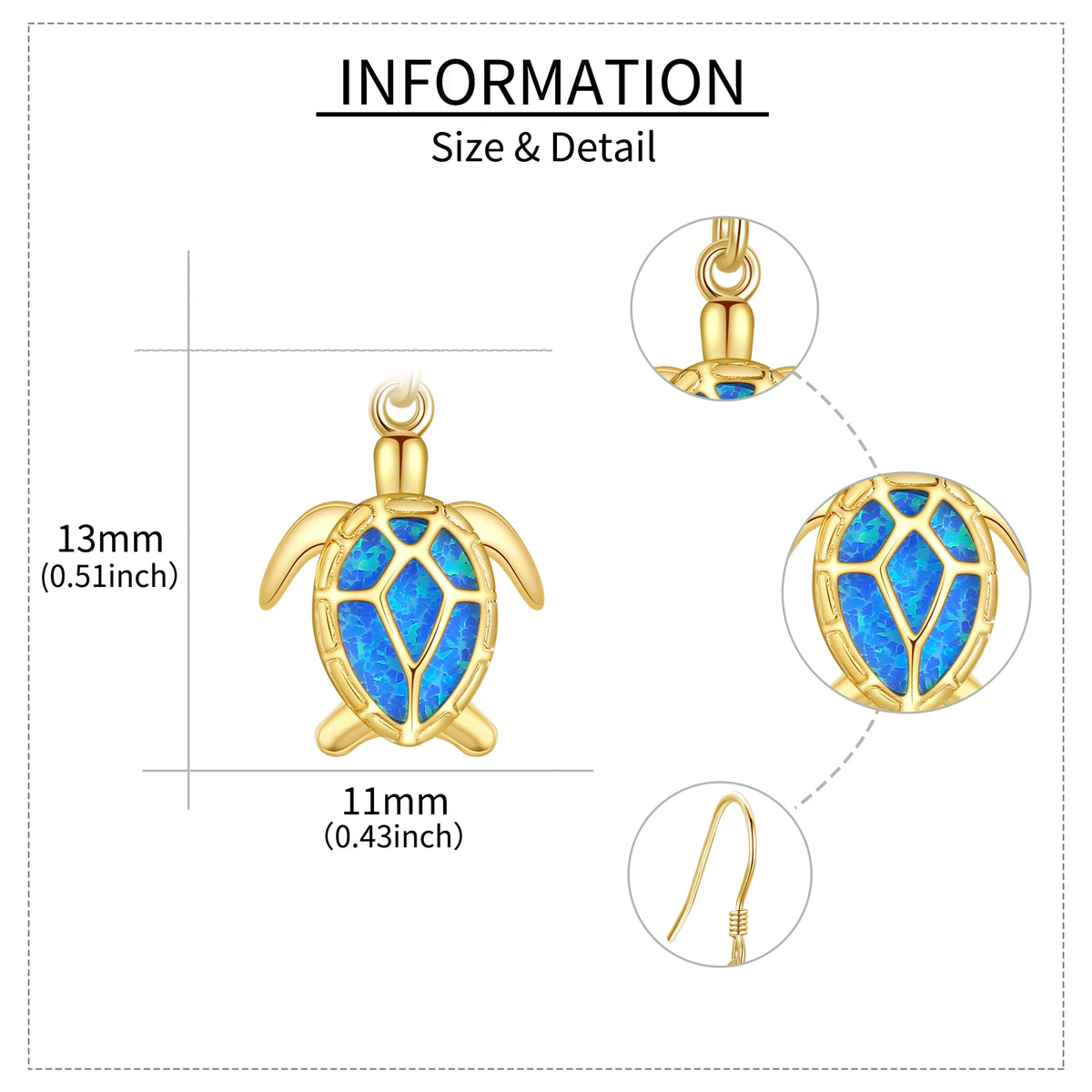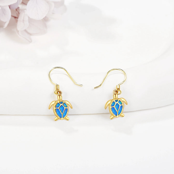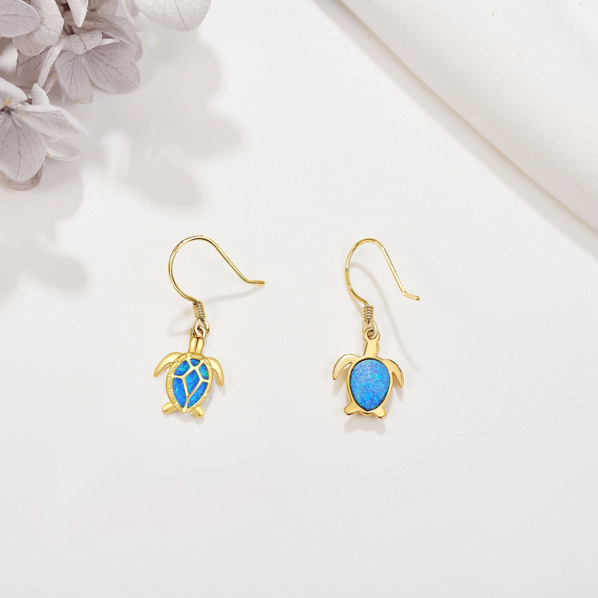 Crafted from luxurious 14K Gold, these Drop Earrings feature a captivating Opal Turtle Design.