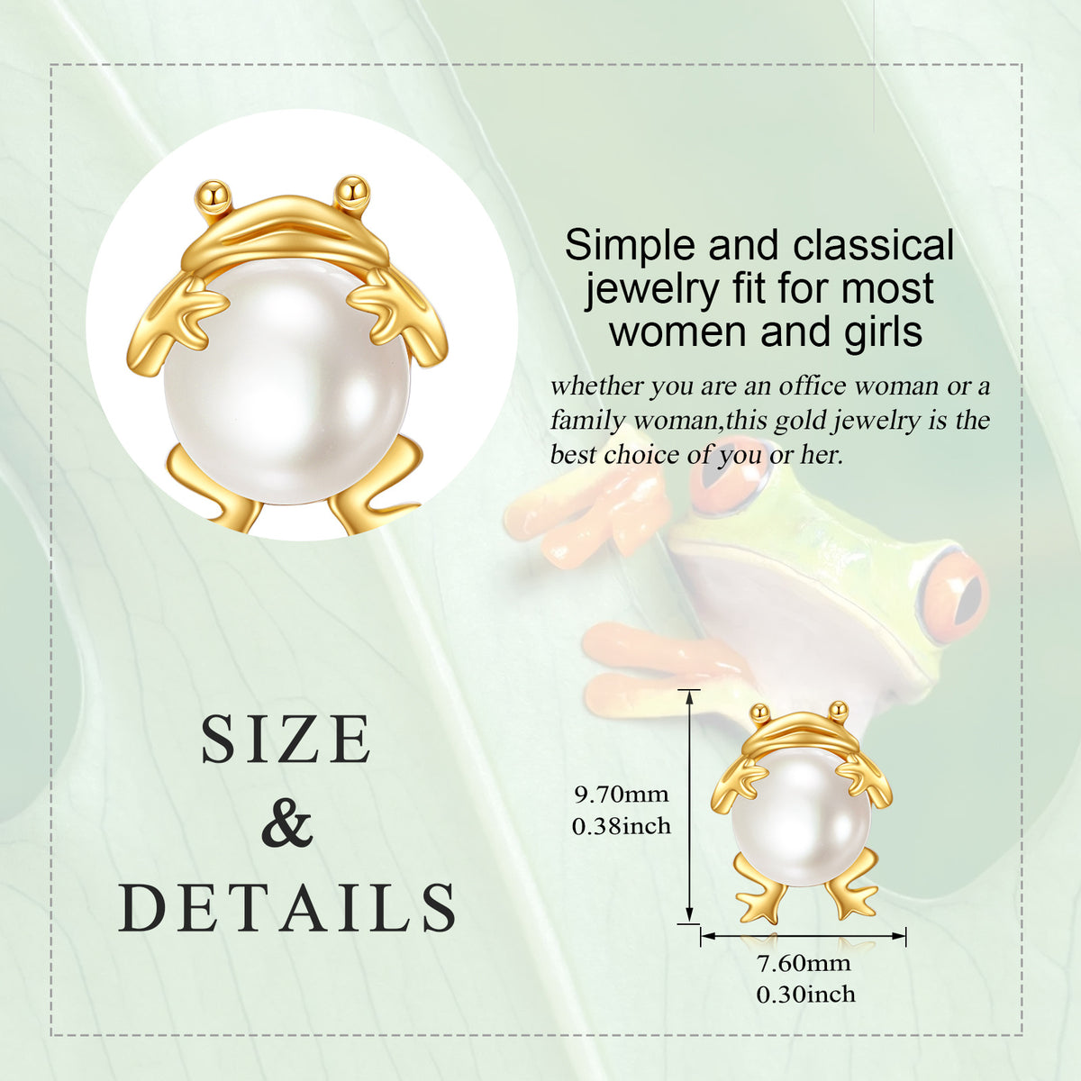 These 14K Gold Pearl Frog Stud Earrings by YFN bring playful elegance to life, designed for women who love jewelry with personality and sophistication. The whimsical frog motif symbolizes luck and joy, while the lustrous pearls lend timeless refinement. Meticulously crafted in 14K gold, these lightweight studs offer durability and luxurious shine, making them perfect for daily wear or special occasions. Their charming blend of nature-inspired design and classic elements ensures they complement both casual styles and elevated ensembles, creating a delightful accessory that captures attention with every turn.