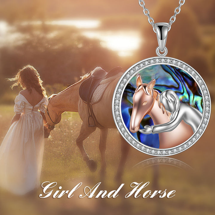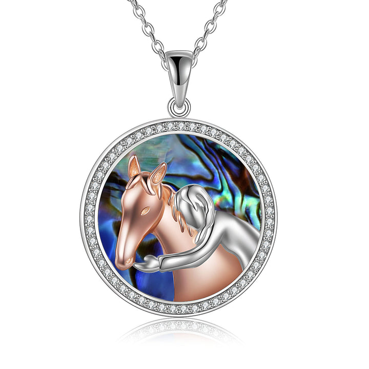 Sterling Silver Two-tone Abalone Shellfish Horse & Girl Necklace for Women Men