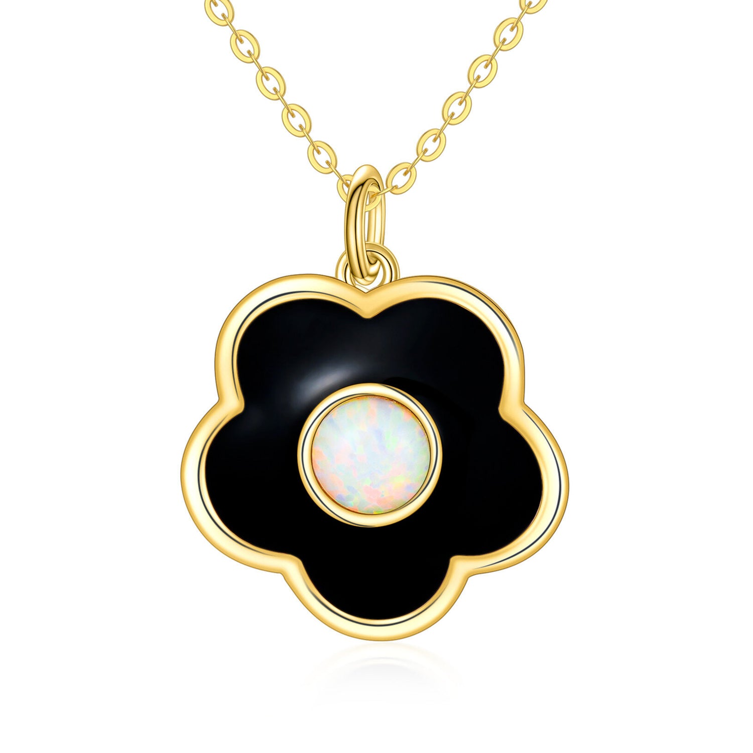 14K Gold Opal Cherry Blossom Pendant Necklace