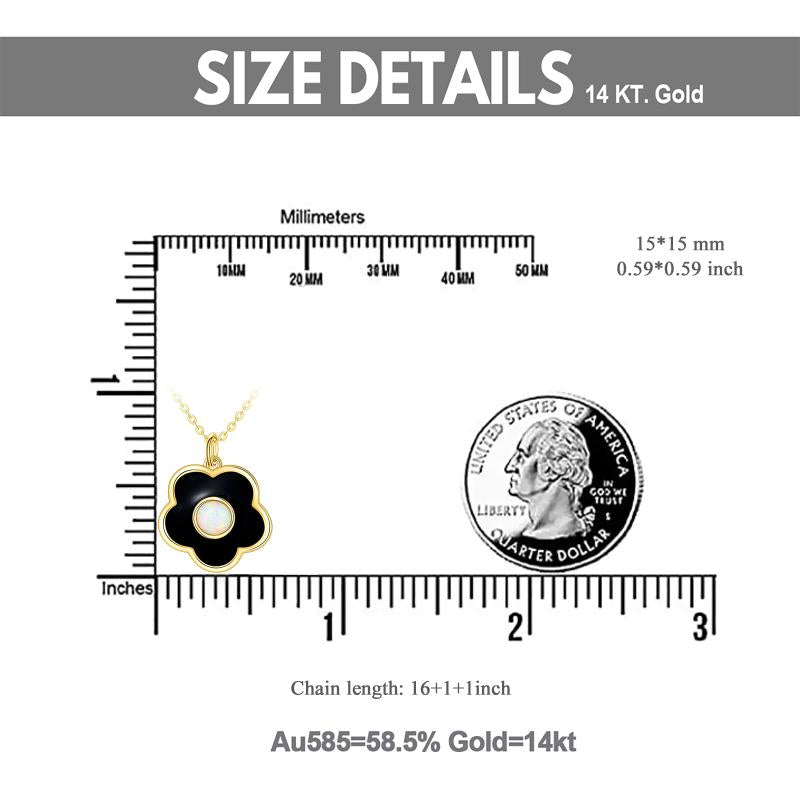 14K gold; opal gemstone; cherry blossom motif; pendant with chain.