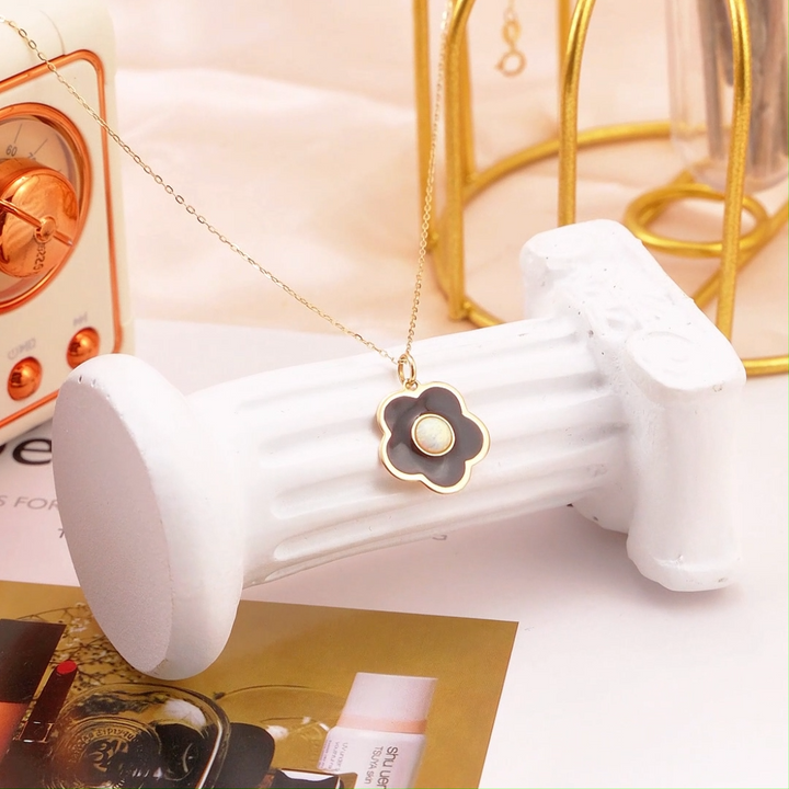 This 14K Gold Opal Cherry Blossom Pendant Necklace by YFN captures nature’s delicacy through a glowing opal framed by graceful cherry blossom motifs. The soft interplay of petals and gemstone creates a serene yet captivating aesthetic, perfect for women who appreciate feminine, gold-rich elegance. Designed to bring a touch of natural beauty to any outfit, this pendant adds poetic charm and standout sophistication to a modern jewelry collection.