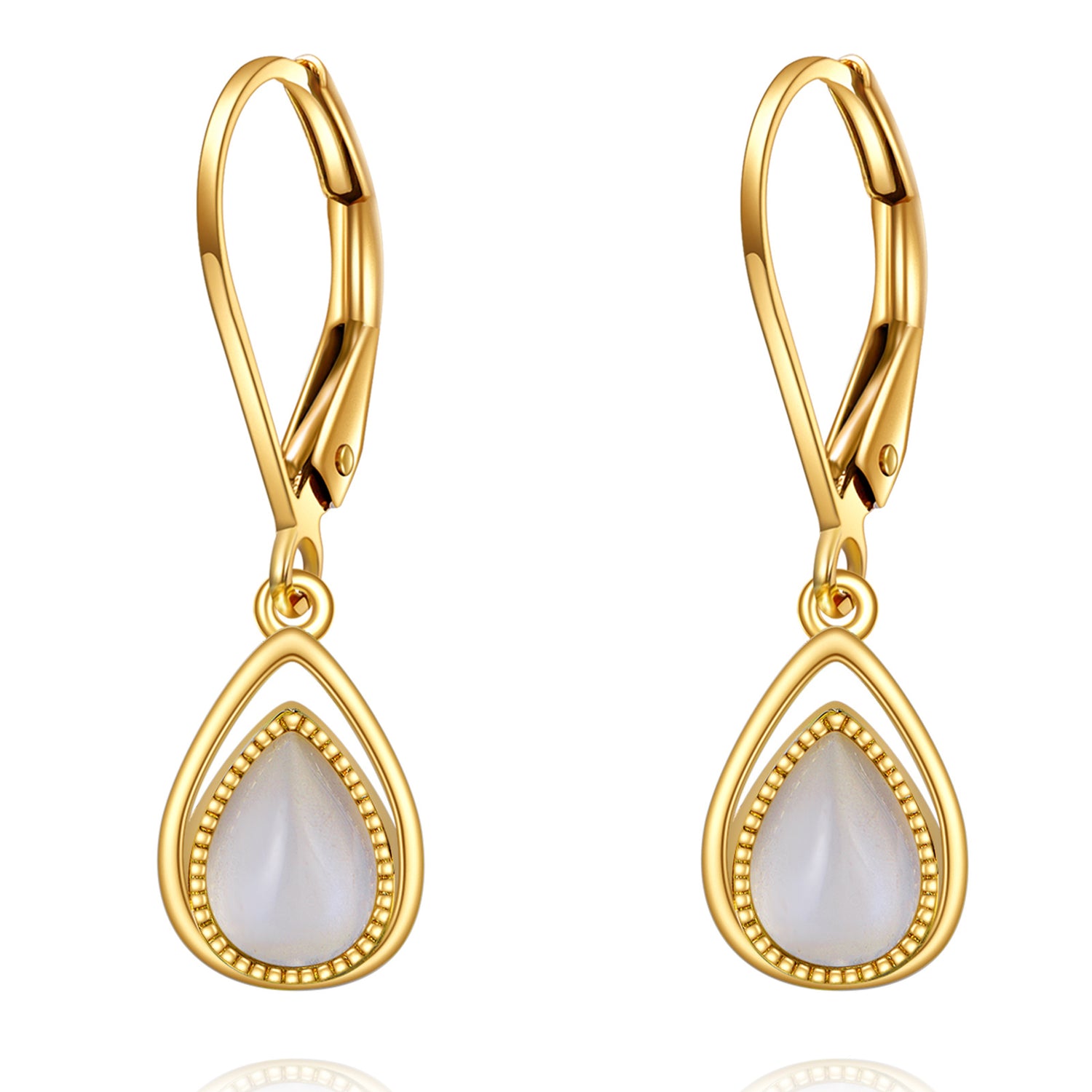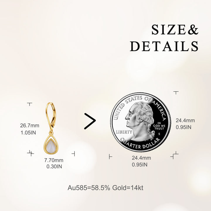14K Gold Pear Moonstone Drop Earrings For Women
