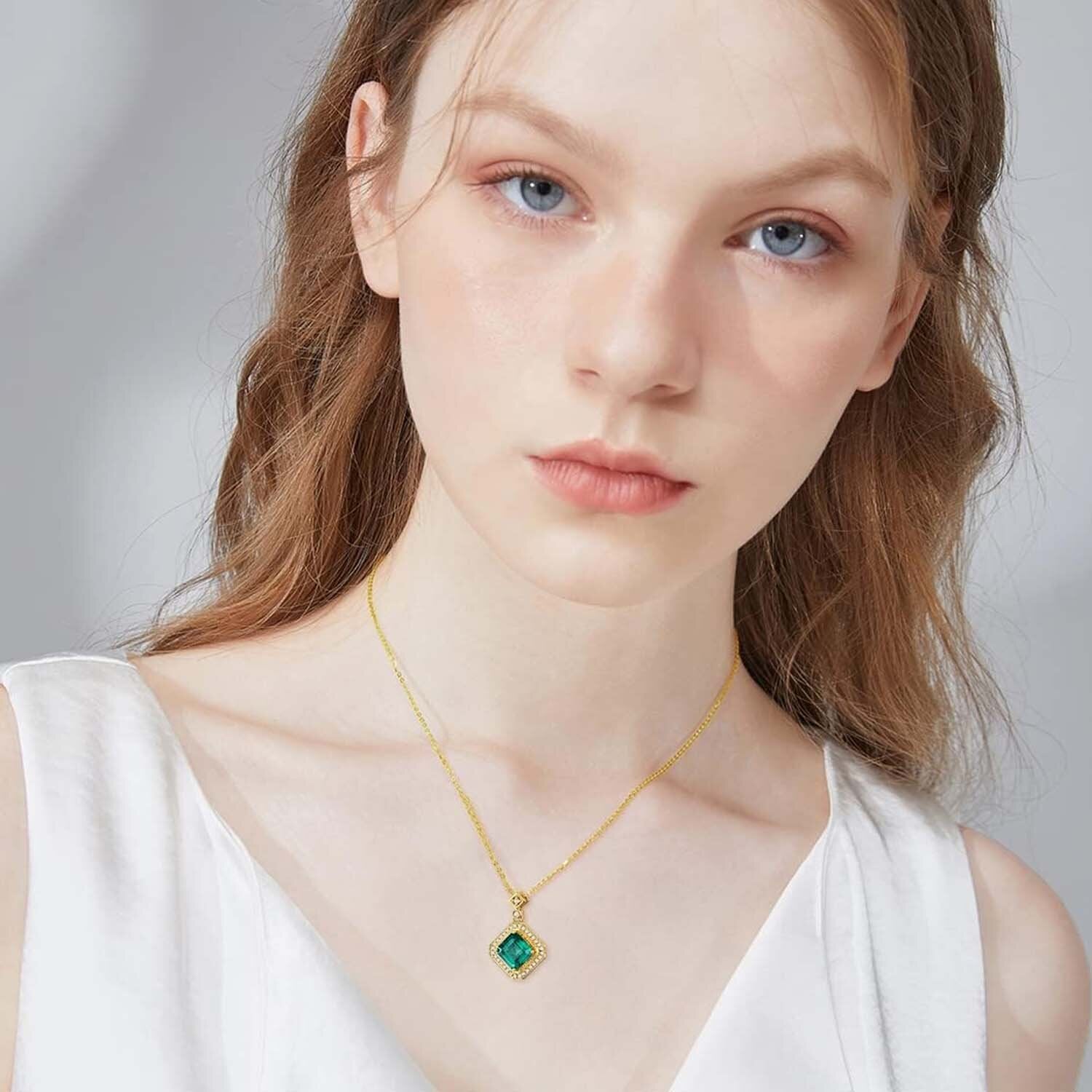 18K Gold Emerald Couple Square Necklace for Women Engagement Wedding Gift for Her