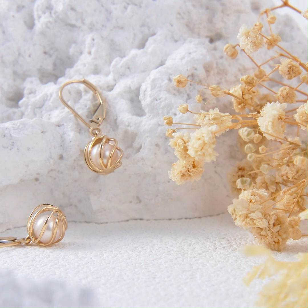 These Drop Earrings are crafted from premium 14K Gold, accented with luminous Pearls.