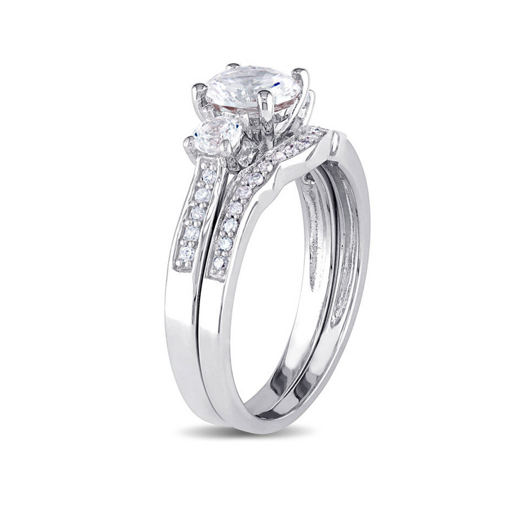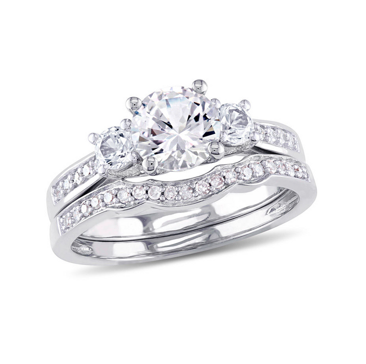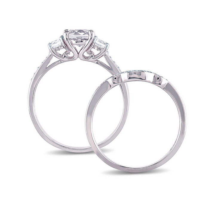10K White Gold 2.125 CT.T.W. Round Lab-Created White Sapphire Custom Three Stone Bridal Set