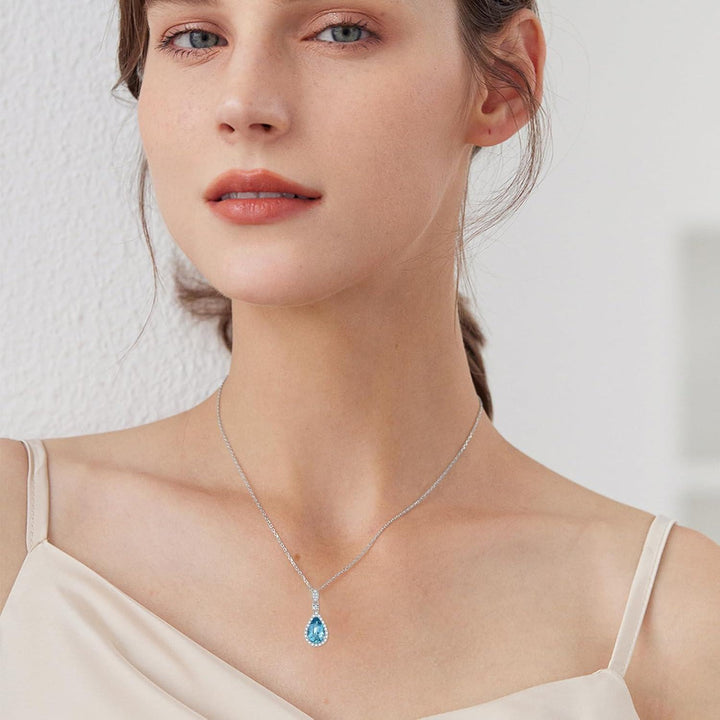 This 10K White Gold Topaz Drop Shape Necklace for Women by YFN captures the serene elegance of London Blue Topaz in a beautifully elongated drop silhouette. The gemstone’s deep oceanic hue symbolizes tranquility, emotional strength, and clarity, while the halo design enhances its refined radiance. Crafted in lustrous white gold, the pendant exudes sophistication and timeless beauty, making it a versatile piece suited for both everyday polish and elevated evening style. Whether gifted or chosen for oneself, this necklace becomes a meaningful expression of poise and enduring grace.