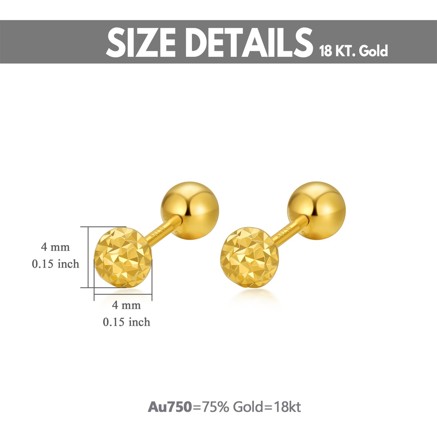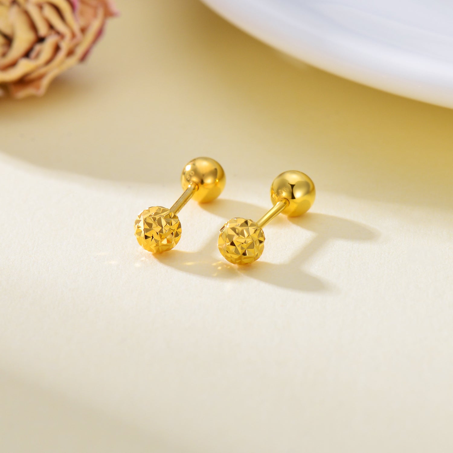 Crafted entirely in 18K gold. Bead-style stud earrings with secure post backing. Hypoallergenic and stone-free.