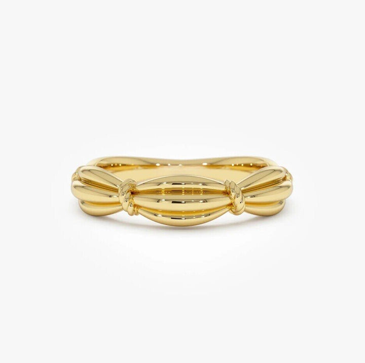 This 14K Gold Textured Knot Ring by YFN is a sophisticated and symbolic accessory. Crafted from 14K gold, the ring features an intricate textured knot design. Stone-free, it emphasizes craftsmanship, offering a sleek, timeless aesthetic, symbolizing unity and connection. This ring is perfect for women who appreciate modern sophistication and elegant simplicity.