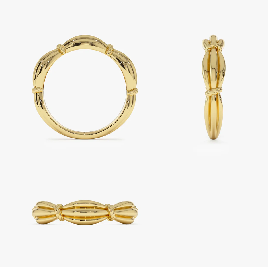 Crafted from 14K solid gold. Features a textured knot design. Stone-free design.